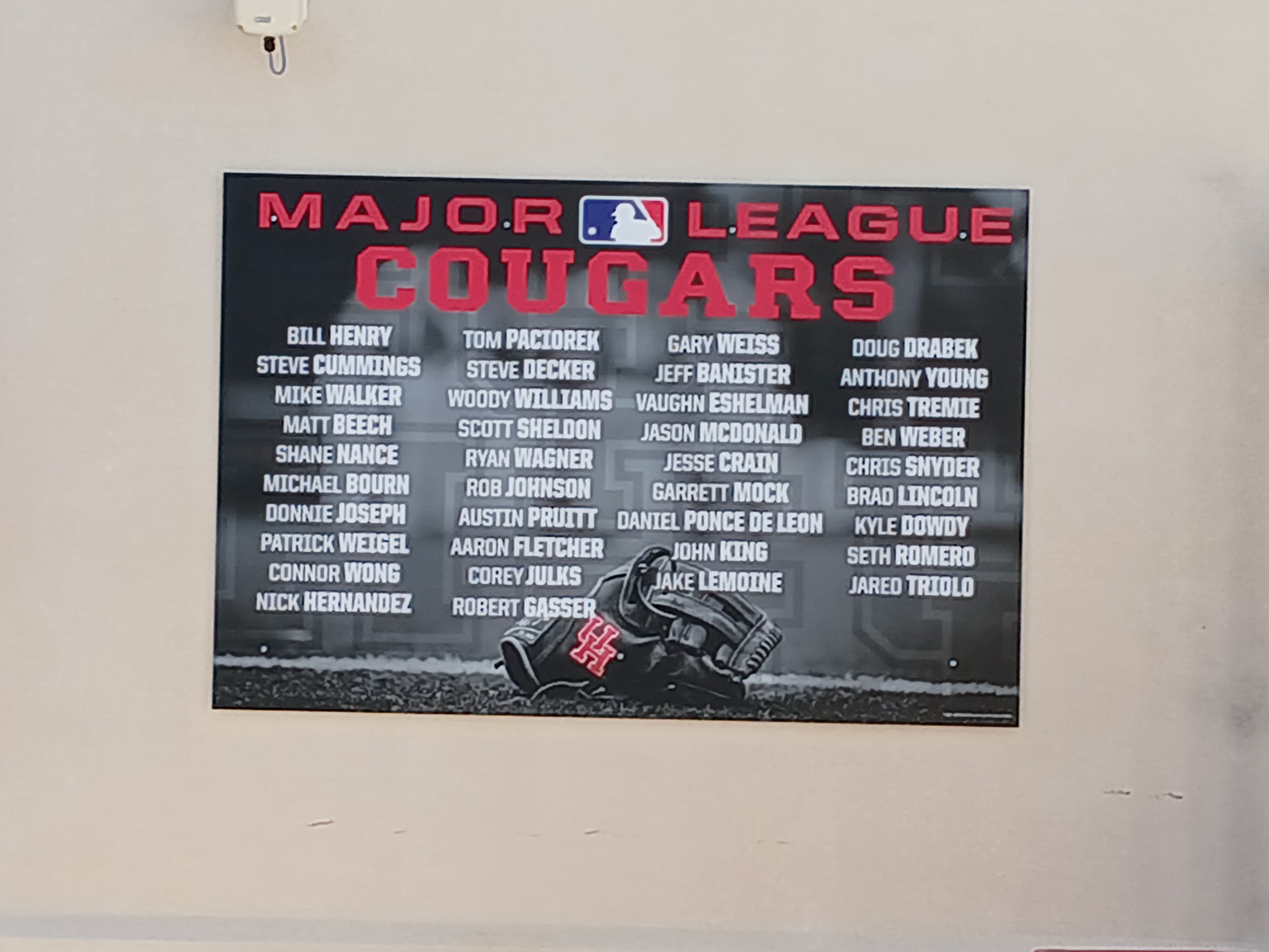 As I walked back the way I came in, through the double doors, passed the University of Houston memorabilia, passed the University of Houston Cougars baseball greats on the wall, into the foyer of the baseball building, and then out onto the sidewalk area where I started, I started to giggle a little bit. Being mischievous and supporting my baseball experience habit can be exhilarating at times, and one of those times was walking into the baseball building at the University of Houston. Again, I don’t jump fences, I don’t pick locks to open gates, and I don’t break into fields that clearly do not intend to be broken into. I have taken a ton of photos from the perimeter of fields and been just fine with that. I have to admit though, this was a really fun adventure with a very happy ending.