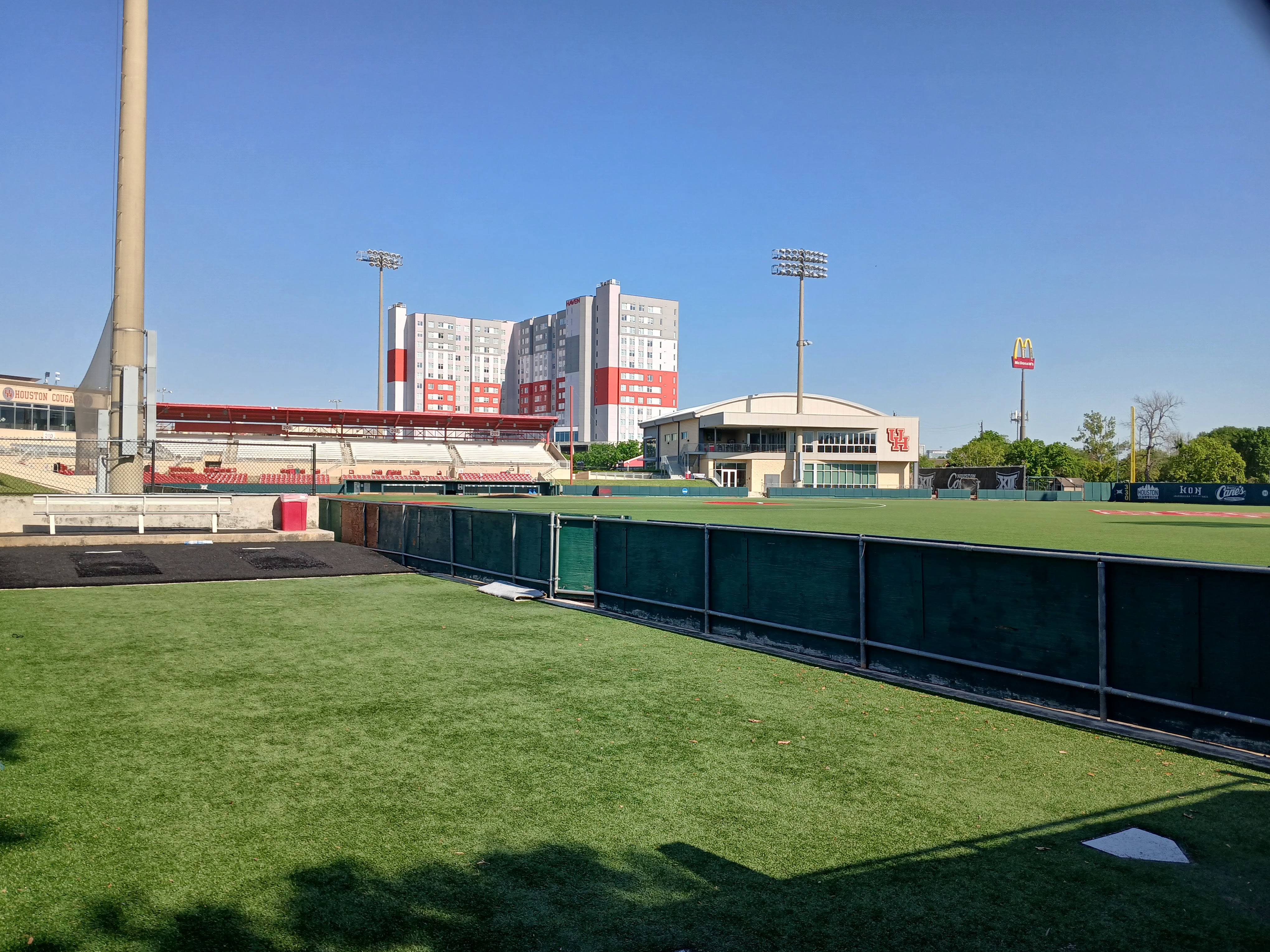 Inside this baseball office/building was a massive tribute to the University of Houston baseball program. It had former players stats and plaques on the walls, it had the former home plate of their previous field (appropriately named Cougar Field), there was a pro shop with uniforms and gloves and bats, and at the tail of one of the hallways – a set of double doors leading out to the field. Once again, I figured, ‘probably locked,’ and once again I was wrong. I turned the door handle on the left door and it opened to the baseball field.