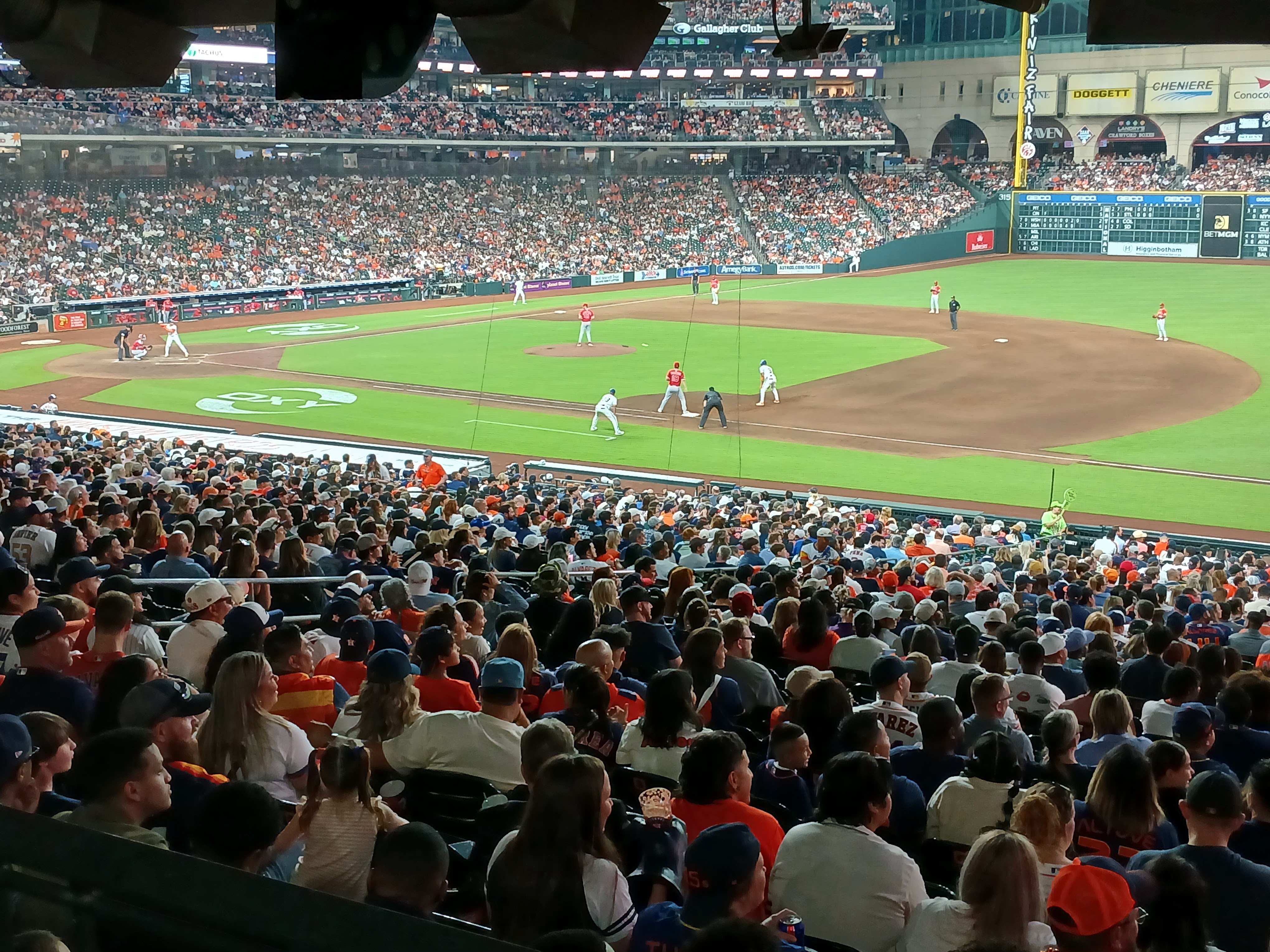 Timing and opportunity – I say it all the time. I walked in to the park in the bottom of the 4th and the 2nd batter to come to the plate was Jeremy Peña. After a Christian Walker walk, Peña marched up to the plate and took his swings. This at-bat resulted in a fielder’s choice groundout, with Peña replacing Walker at first base. Out or hit, it was super cool watching him in person. Peña would eventually be stranded at second base, so I took the opportunity to check out Daikin Park and wait for Trout’s next at-bat.