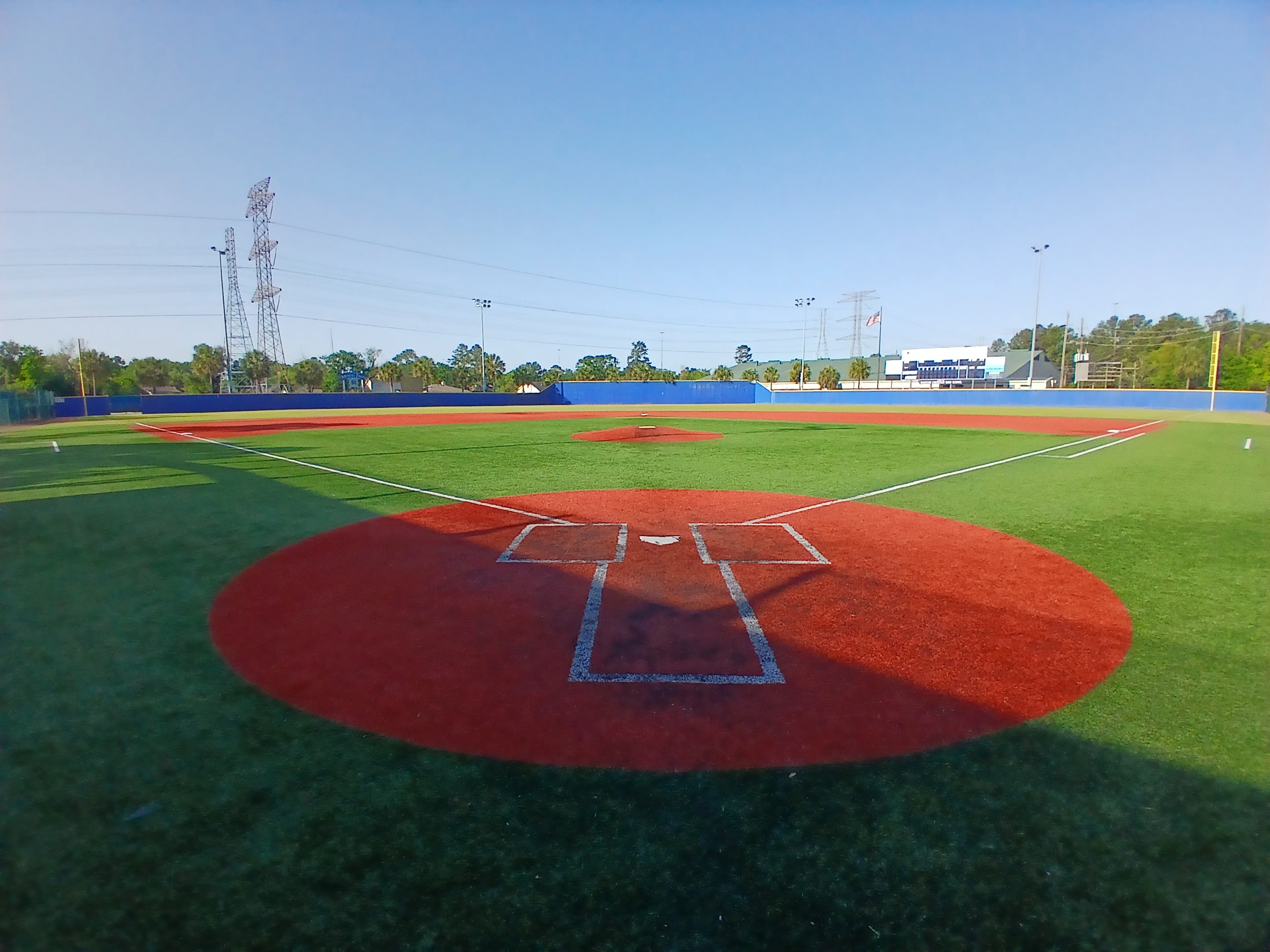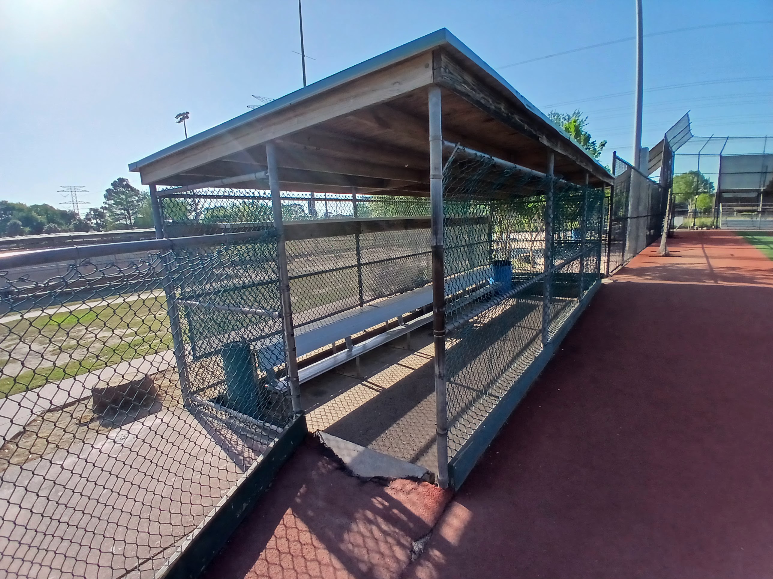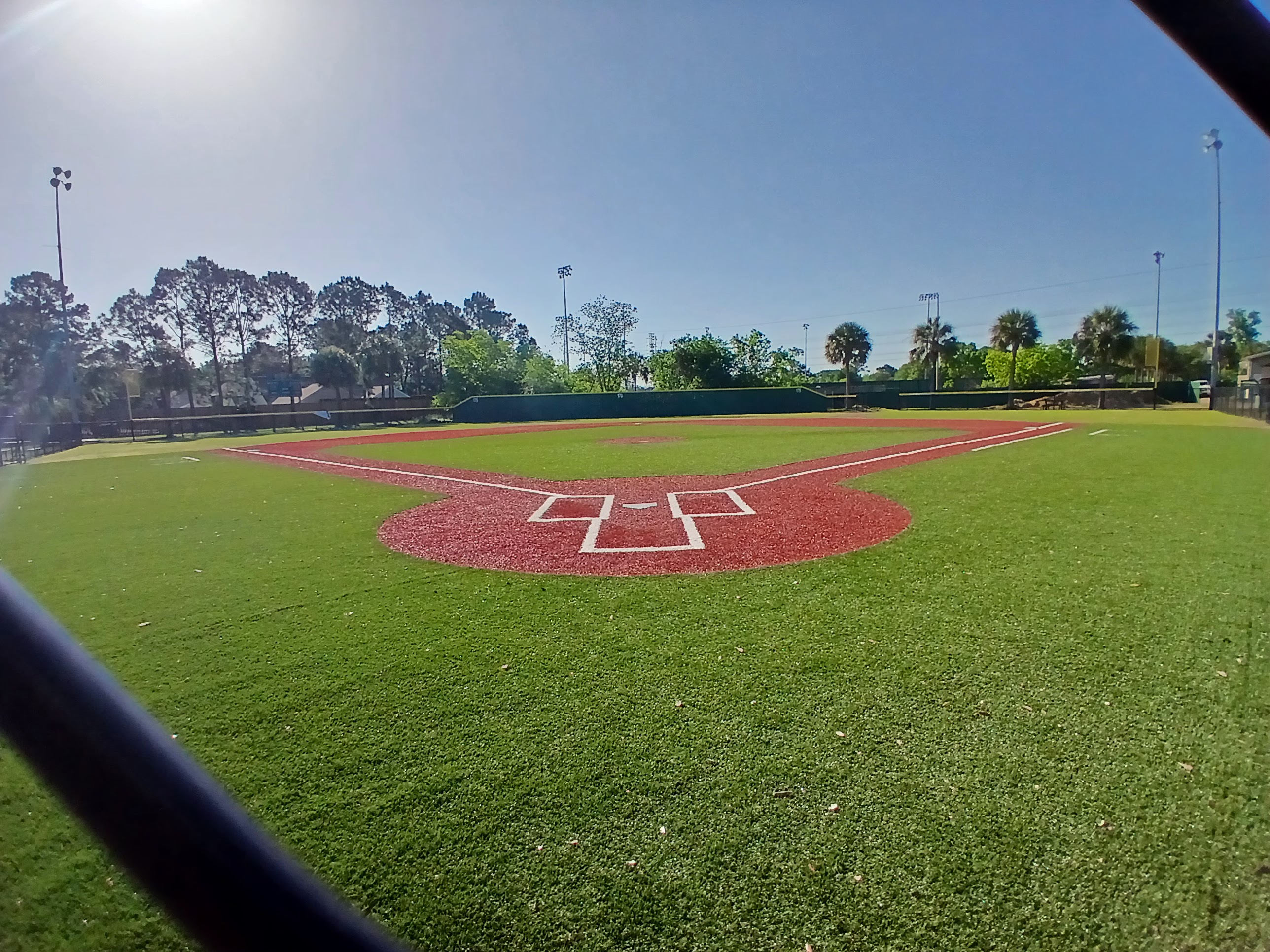 I followed the sidewalk down to the bleacher section of the first field in the complex, a gorgeous showcase type field with a huge fan seating section, covered dugouts, and a professional look. There were some concession stand workers preparing their kitchen for an upcoming tournament and I said hello and asked if I was okay to be in there. They said “no problem” which sort of meant that they didn’t know or probably didn’t care that I was there. I walked around this main field and snapped a few photos of the field and surrounding area.
