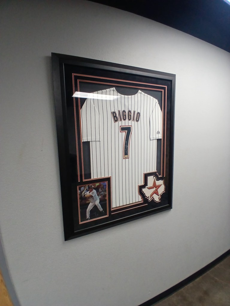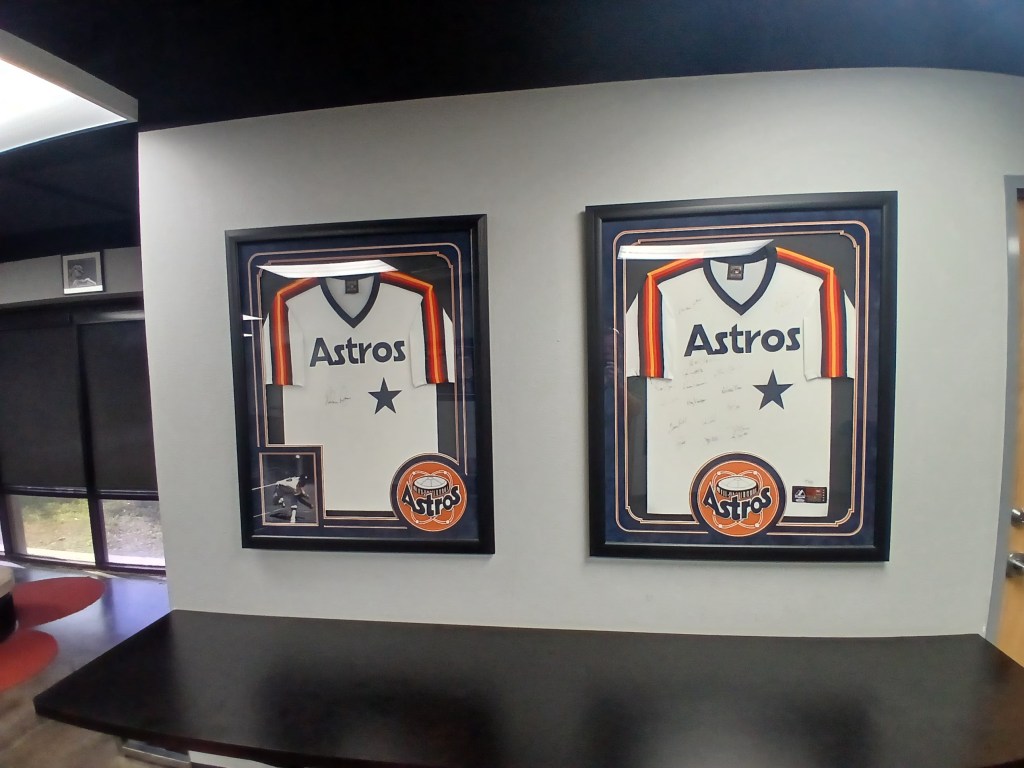The man who greeted me was Jordan Venable, Director of Operations for Marucci Elite Baseball. Needless to say, a very important member of the Baseball USA complex, if not the most important. Jordan showed me the inside of The Yard, the Marucci Sports pro shop, the indoor hitting cages, locker rooms, and guest lounge area. We chatted friendly and candidly about travel baseball, parents of baseball players, and the game within the game of amateur athletics. Jordan has a world of knowledge in baseball and I cannot imagine a better resource in the Houston area for players, coaches, and families. He was so cool to invite me into his world, if only for a few moments, to educate me on all things Houston baseball. Out of respect for his time, I didn’t go too hog wild taking photos inside The Yard. But I had to snap a photo of the Nolan Ryan signed Houston Astros jersey!!!
