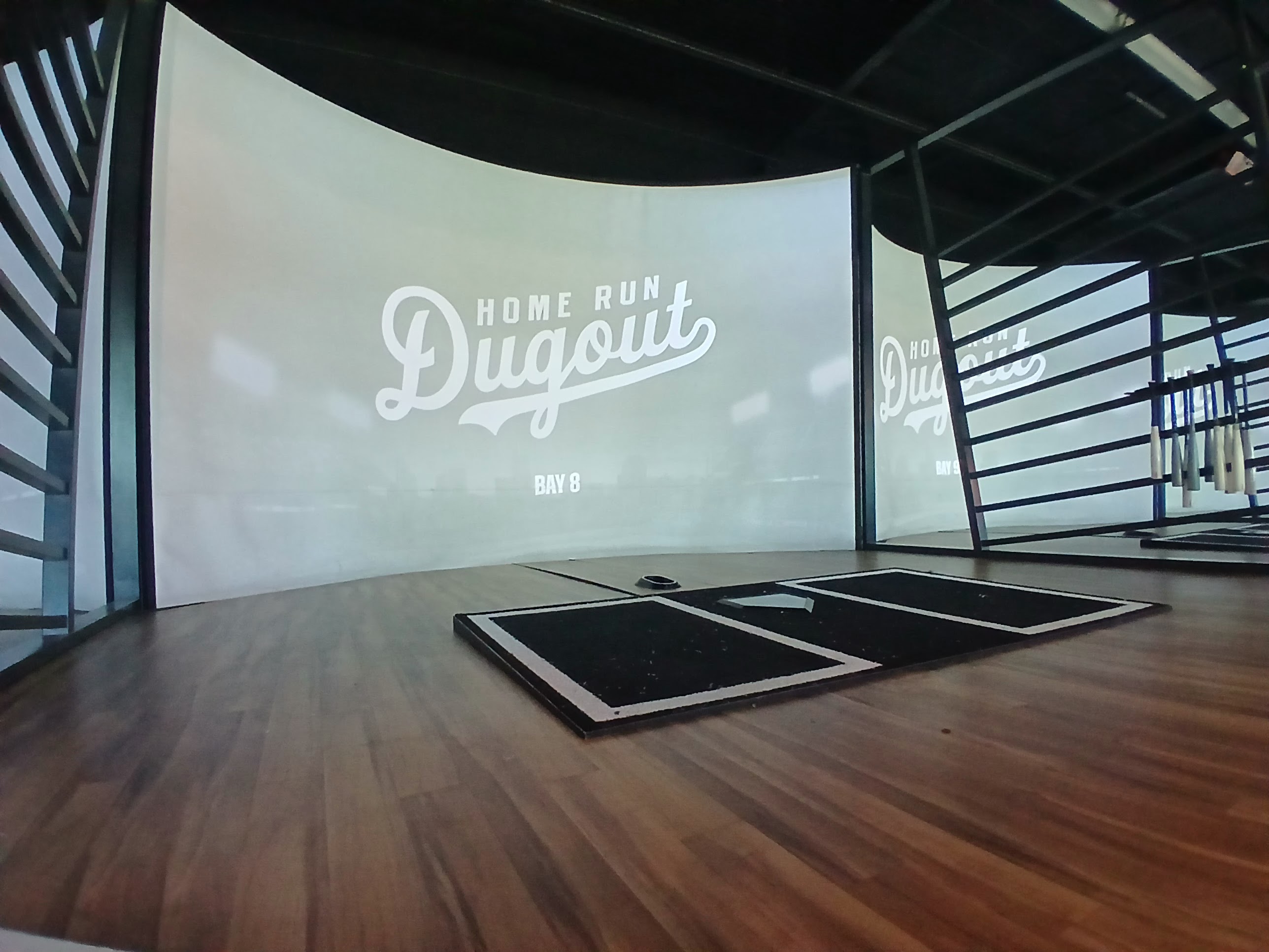 She started with the concept of the baseball bays. The baseball bay sections at Home Run Dugout are where you and your party can relax, have some great food and refreshments, and have some baseball fun as a fan cheering or as a hitter. The baseball bays consist of a kiosk for player sign in and to customize their experience, a large projector screen where the field of your choice (via the kiosk customization) would appear, a row of baseball bats to choose from, a home plate, and a feeder that pops up a baseball for you to hit onto the screen. Picture a soft toss station at your local baseball field, with a coach or fellow player lobbing you a baseball to hit, which helps improve your swing. Here, the automatic feeder serves as the soft toss person, so your only job is to keep your eye on the ball and then clobber it into the screen. Then, check the screen to see how far you hit and where it landed. What a concept it is.