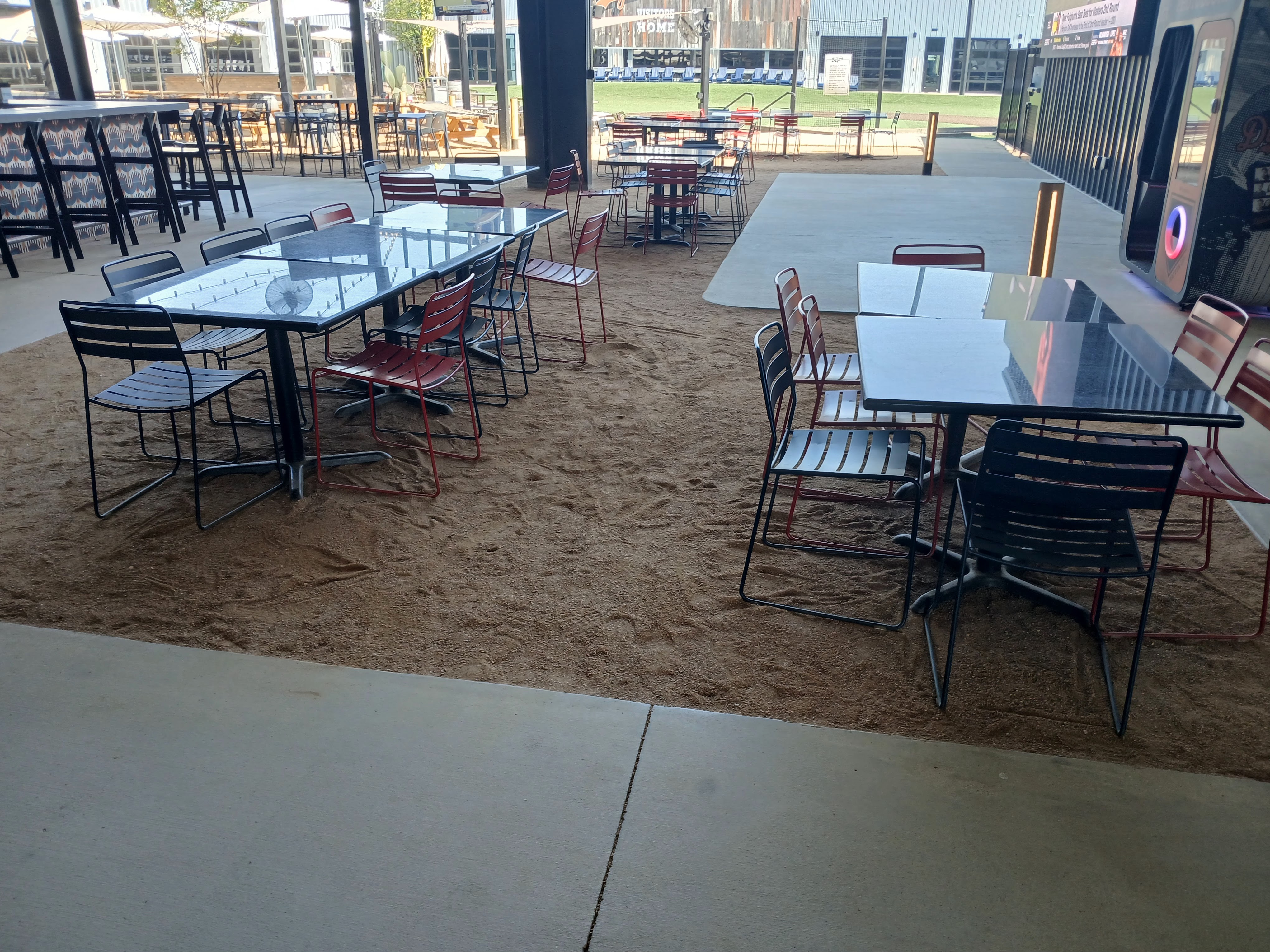 After walking me through the baseball bay sections at Home Run Dugout, Micaela invited me to take a tour of the perimeter of the baseball field, the concert stage (yes they have that too!), and the general seating areas of the exterior. It was Friday and the business of Home Run Dugout was about to become reality, so I was so appreciative of Micaela’s time and generosity in accommodating me. She departed our tour and I mentioned that I would connect with her before I left. Then, I set out and walked the perimeter of the field and seating area to grab these photos.