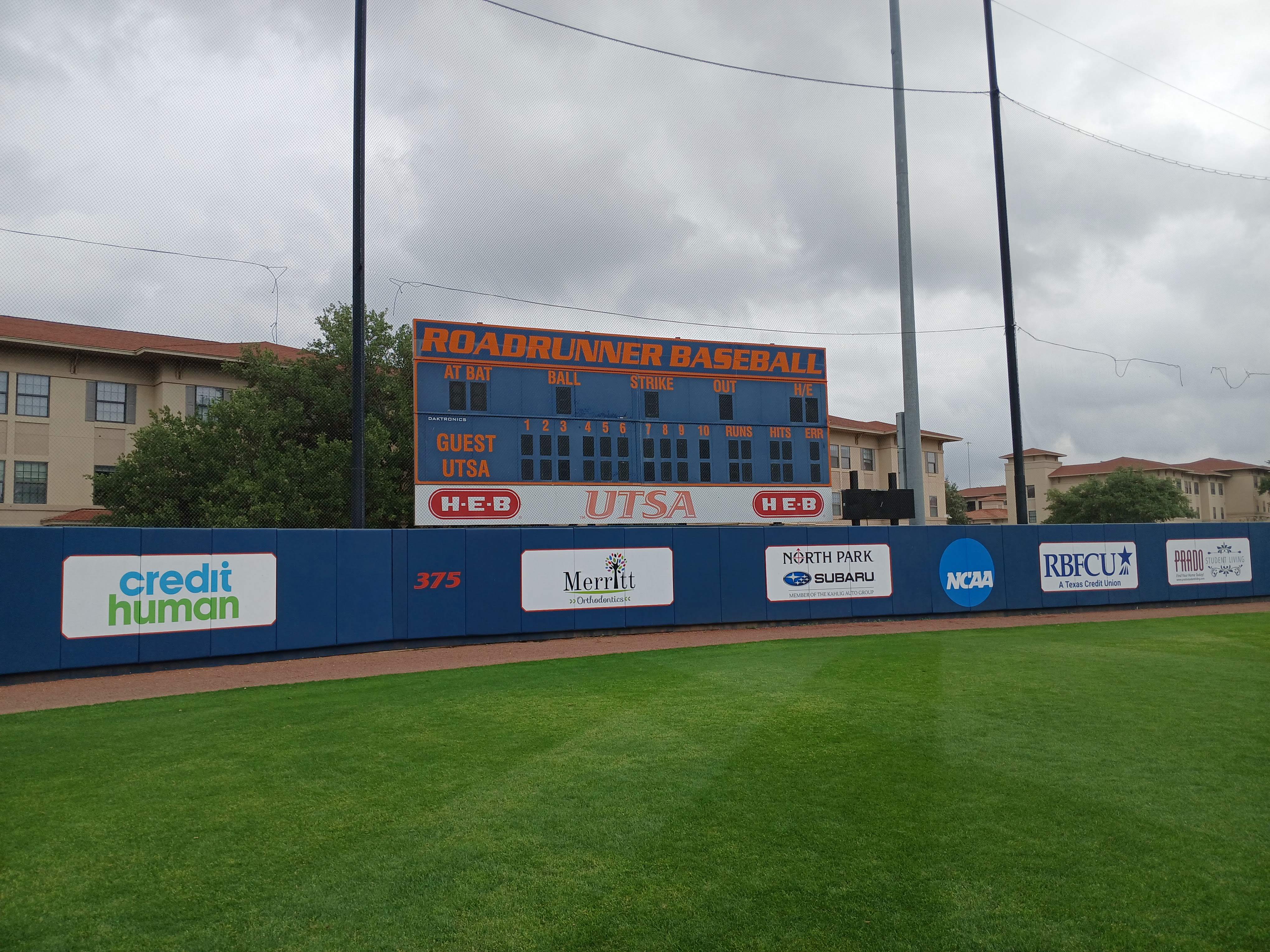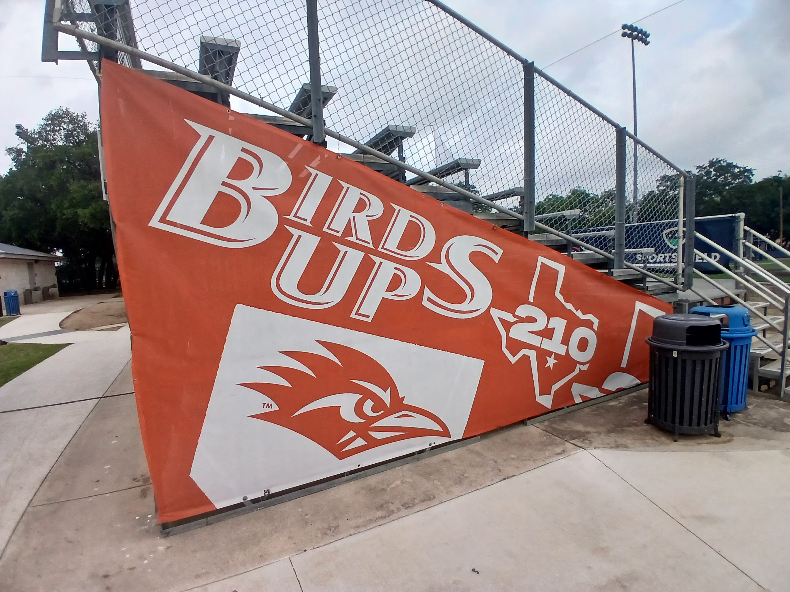 The UTSA Roadrunners play at an amazing ballpark, I believe to be called Roadrunner Baseball Field. Hey, keep it simple, I like it. Great park, awesome seating section behind home plate, cool banners, and love the Roadrunner logos all over the park. I found a great parking spot within 100 feet of the field, not sure if it was legal or not, but I lived to tell the tale without any ticket, boot, or negative situation. Overall, it was another awesome San Antonio baseball experience at the University of Texas at San Antonio, home of the Roadrunner Baseball Program.