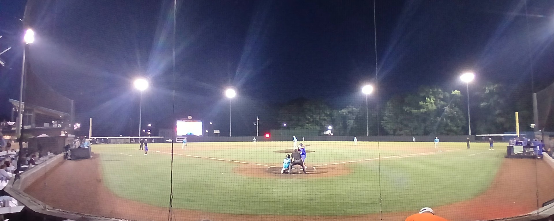 I mentioned the rain delay and I have to mention the entertainment portion of the show. One that Peninsula Pilots first baseman, Grayson Fitzwater of VMI (Virginia Military Institute) took center stage. Starting with the letter dance routine everyone knows to the song “YMCA” and moving on to air guitar and sing lead air vocals on Journey’s “Don’t Stop Believin’,” Fitzwater showed up big time, firing up the crowd, making sure no one left in their seats during the rain delay was unentertained, and earning a ton of Pilot fans in the process. I might add that Fitzwater casually and confidently walked out and performed in front of the reported 2850 fans in attendance last night at War Memorial.