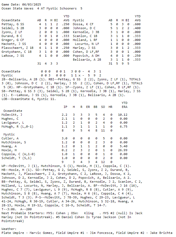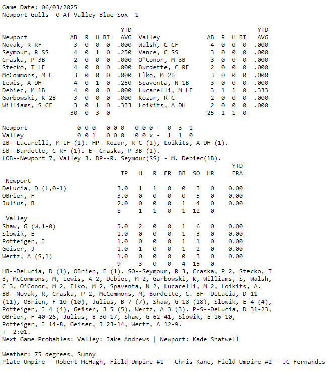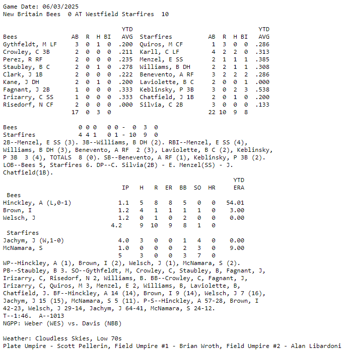 June has been a very busy month for summer collegiate and amateur baseball leagues nationwide. And it is about to get even crazier now with a flood of games and leagues having Opening Days this week. Here are the box scores and game recaps I am following this morning: