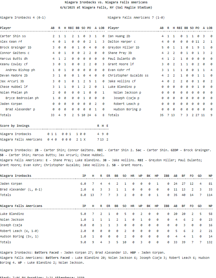 Home opener for the Niagara Falls Americans in the Perfect Game Collegiate Baseball League. And the fans were rewarded with a 7-4 win over the Niagara Ironbacks at historic Sal Maglie Stadium, just minutes from the famous Falls of Niagara Falls.
