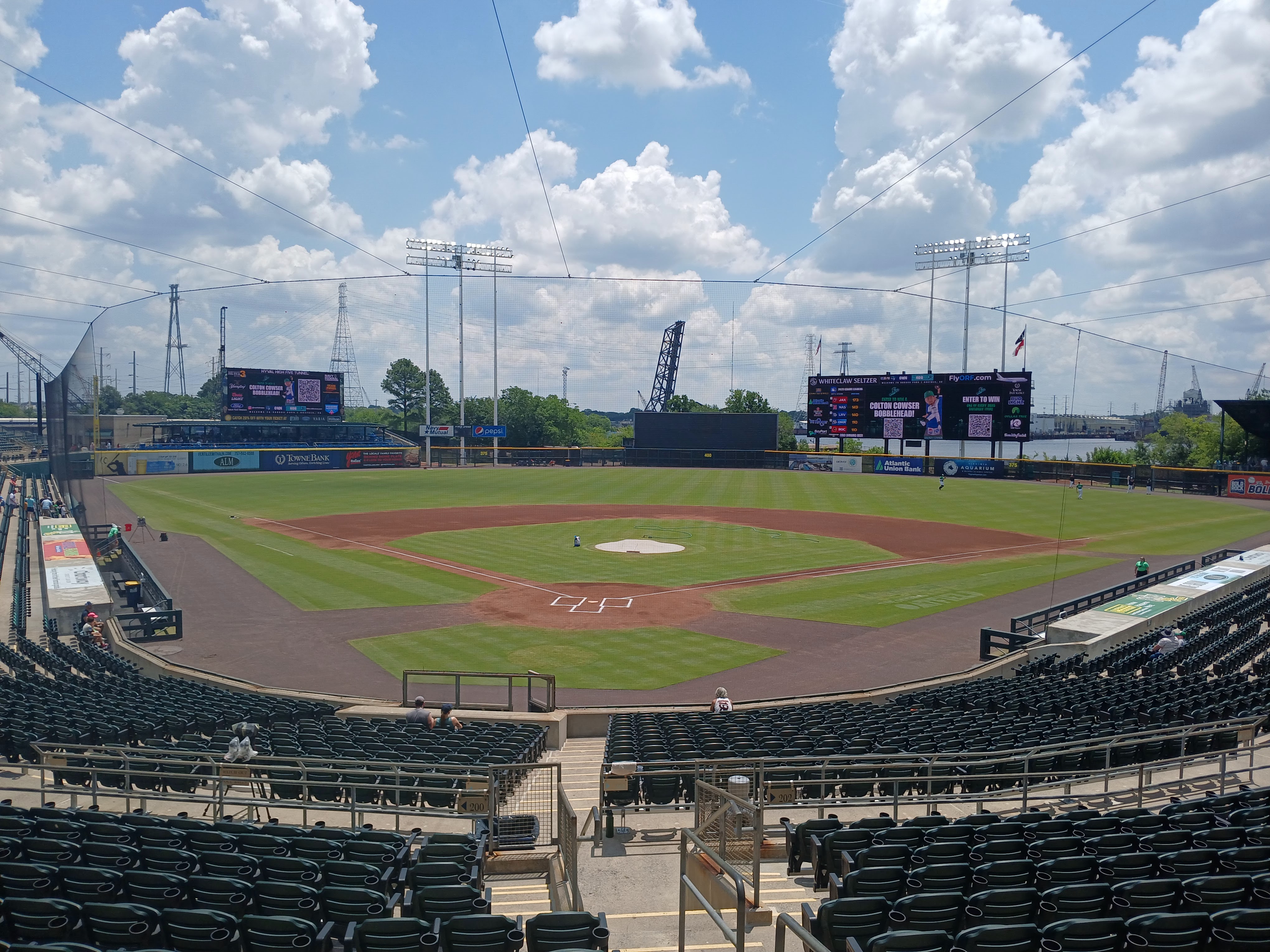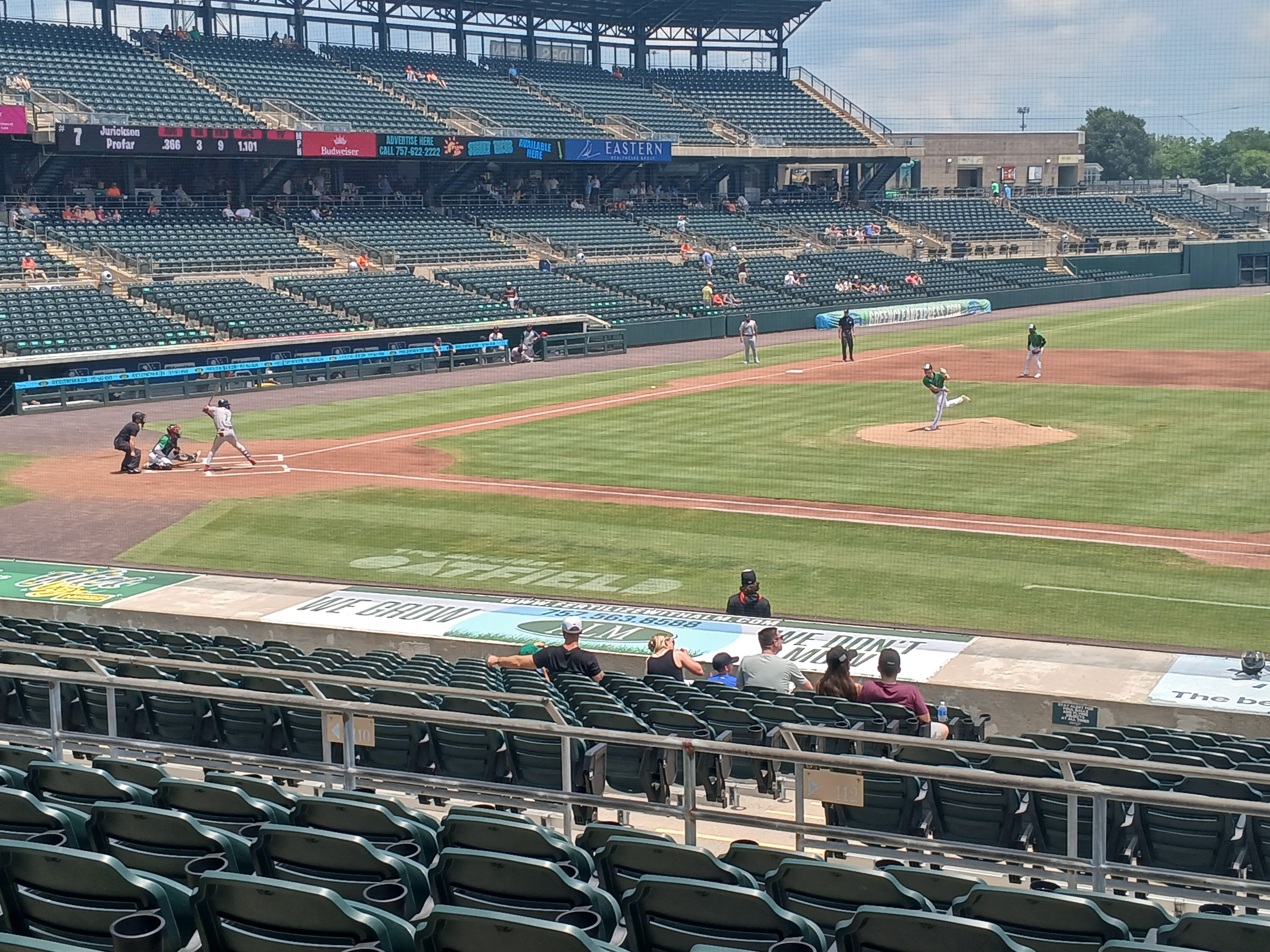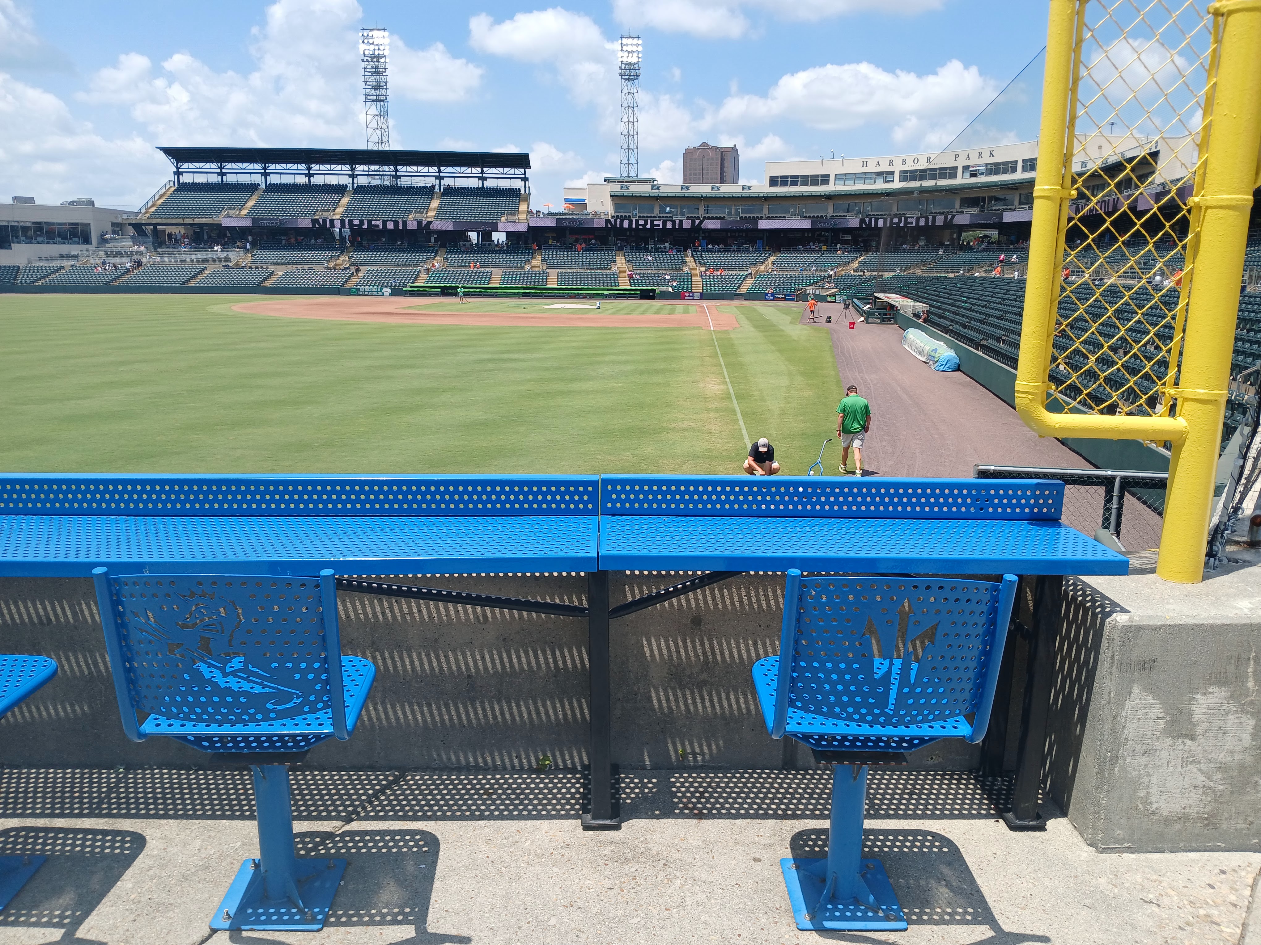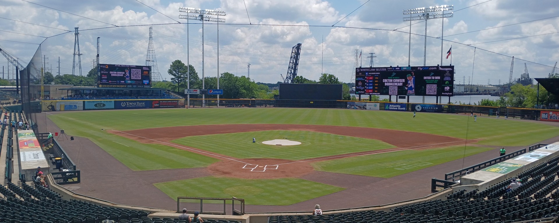 Summer collegiate and amateur baseball leagues are rolling on as we approach the July 4th holiday week. Rain and high temperatures are a common scheduling issue for many leagues, especially here in Hampton Roads and the Carolinas. In between all the SCABL games and highlights and box scores, I took in a Norfolk Tides game yesterday with Rachel. Here are some photos from the game, seen 99% of the time in the shade up the upper deck level seating.