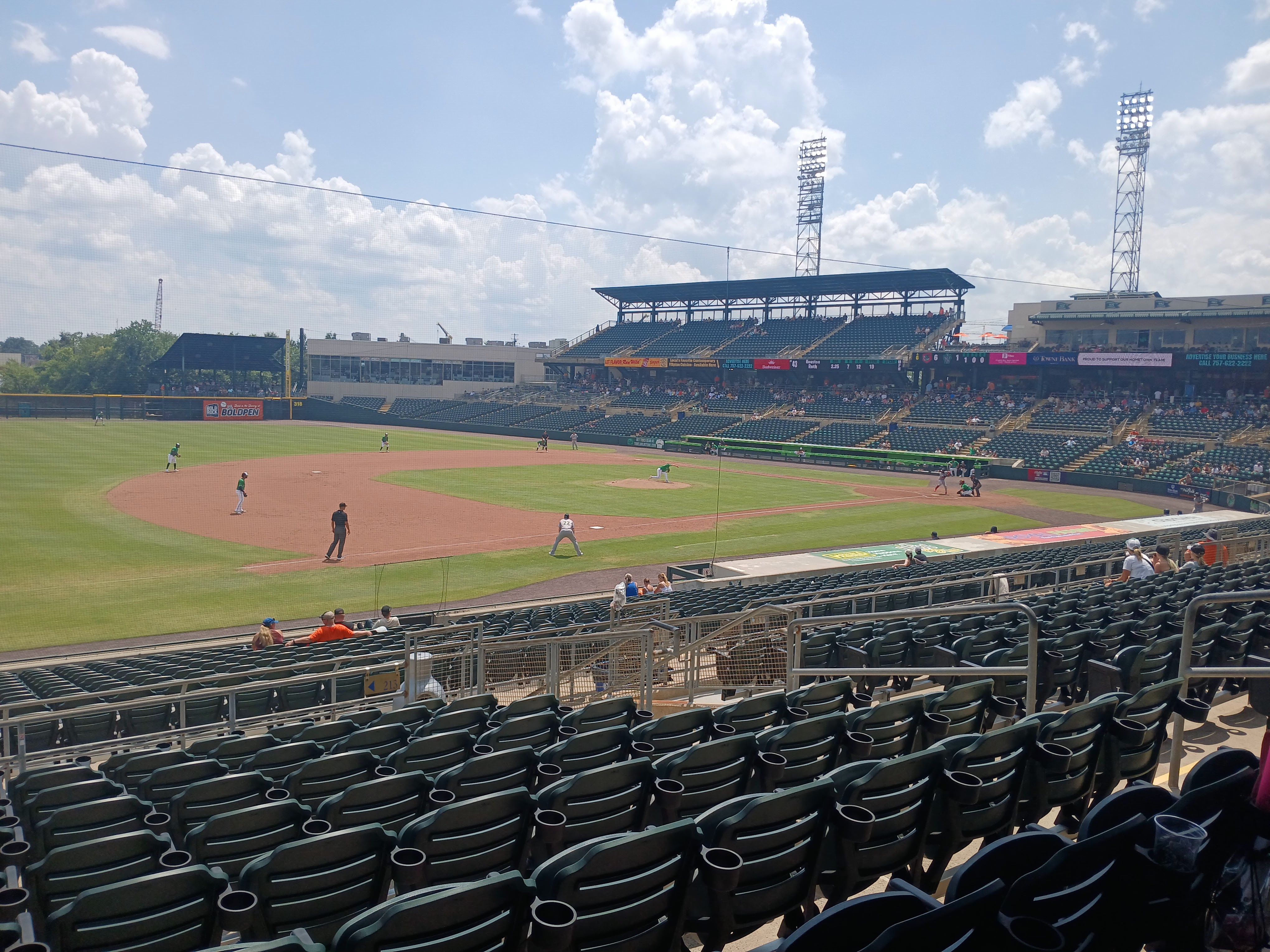 After securing two cups of ice cream and plenty of napkins, Rachel and I found shade and seating in the left field 200s. The game was moving along nicely and the sun was starting to get blocked by a few clouds. Nonetheless, we stayed in the shade and watched the rest of the game from left field. The Stripers had jumped out to an early lead. The Tides chipped away with a few home runs late, but it wasn’t enough in the end. Stripers took the sunny Sunday matinee 6-4. One final note on the game, Samuel Basallo continues to impress at the plate, slugging a laser shot home run to dead center field. The 20 year old C is a top prospect and an absolute can’t miss MLB player waiting for his turn with the Orioles, or perhaps as trade bait for another team.