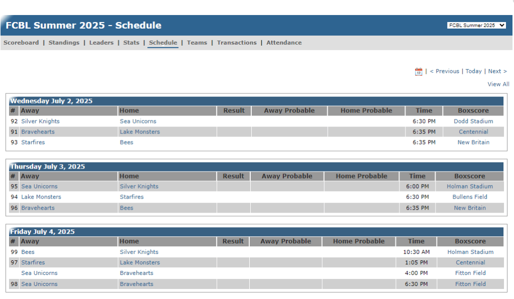 And if you are in these areas, support these local FCL teams this week. Tons of great games all week, including July 4th!