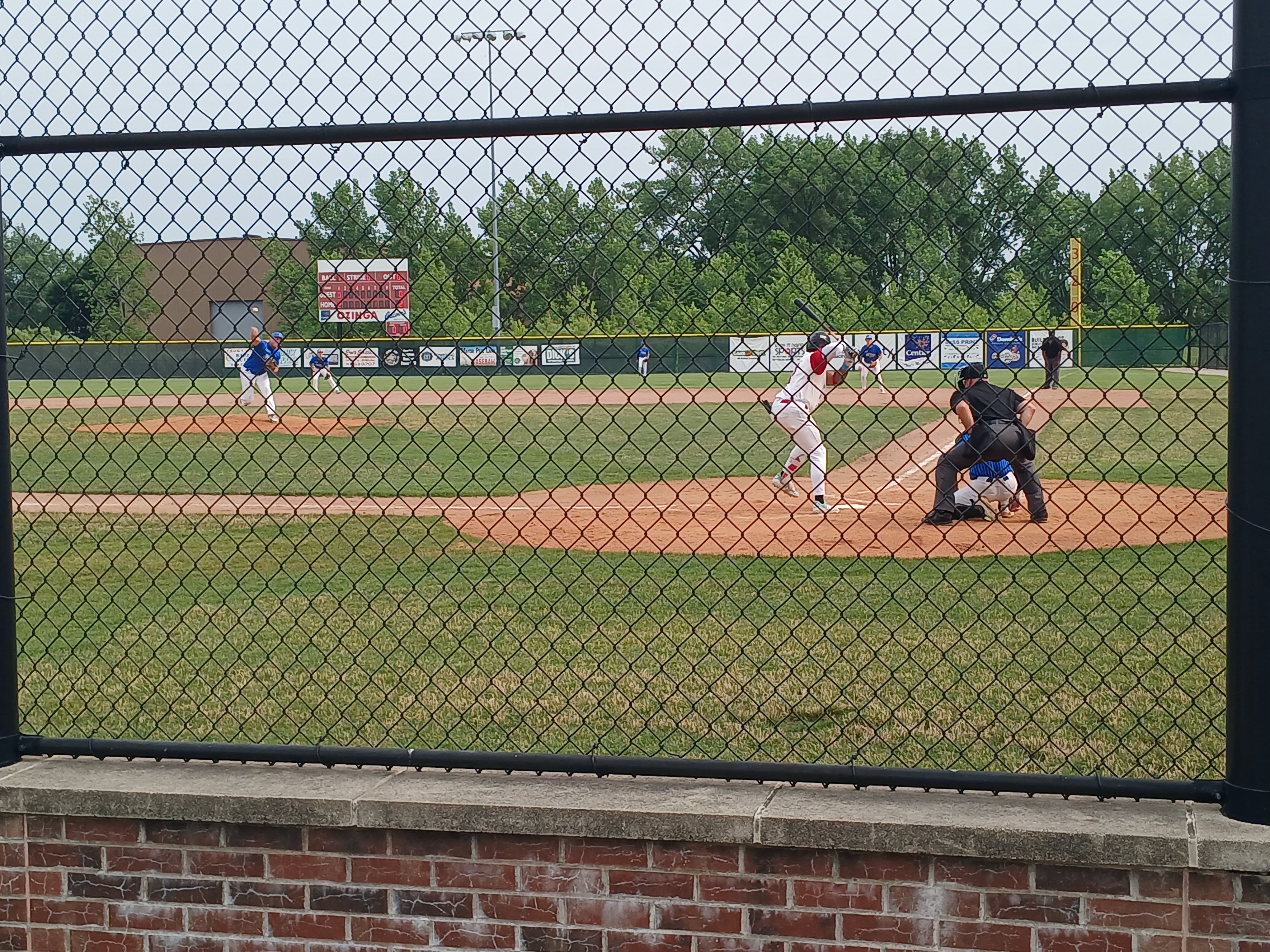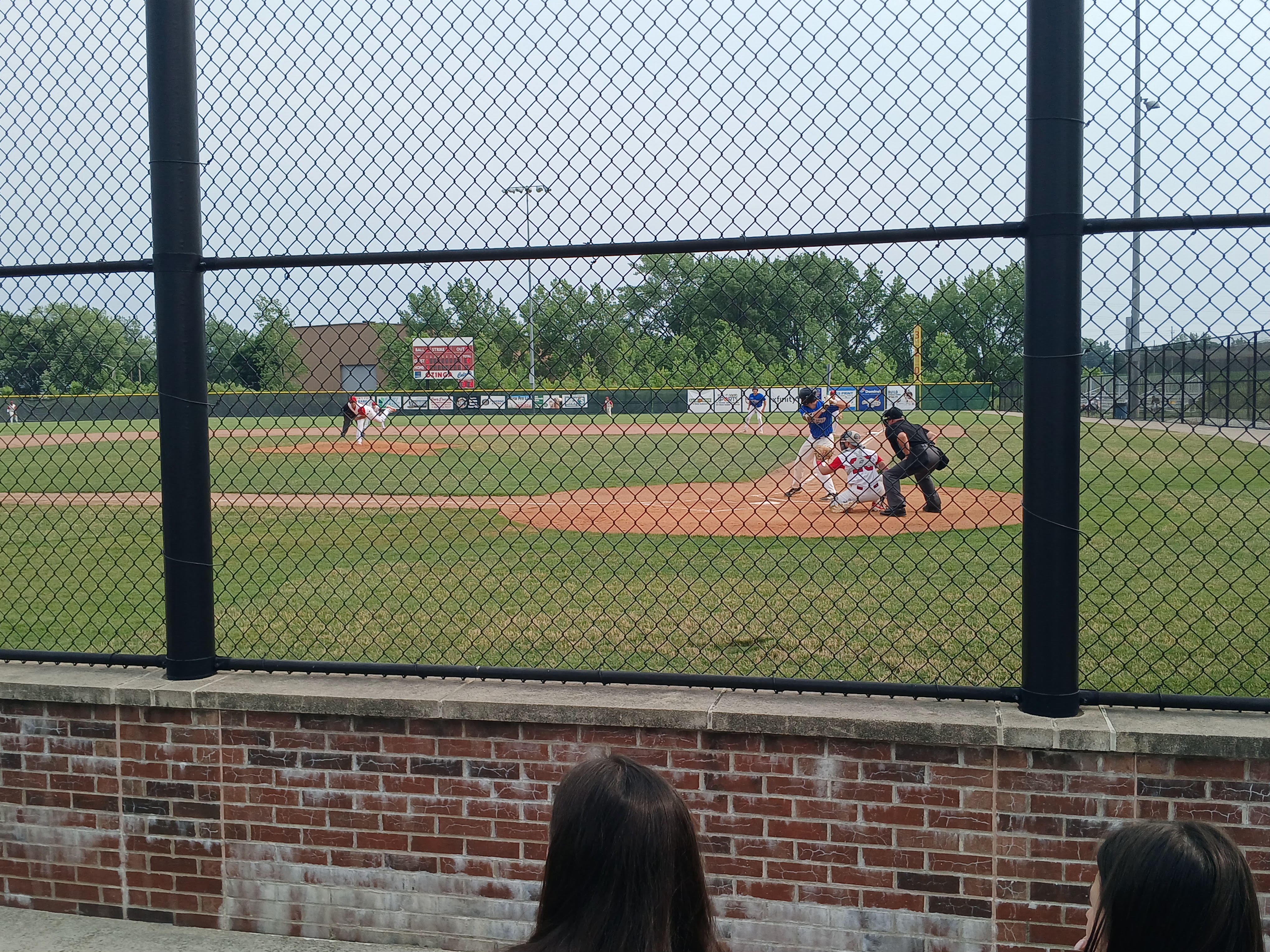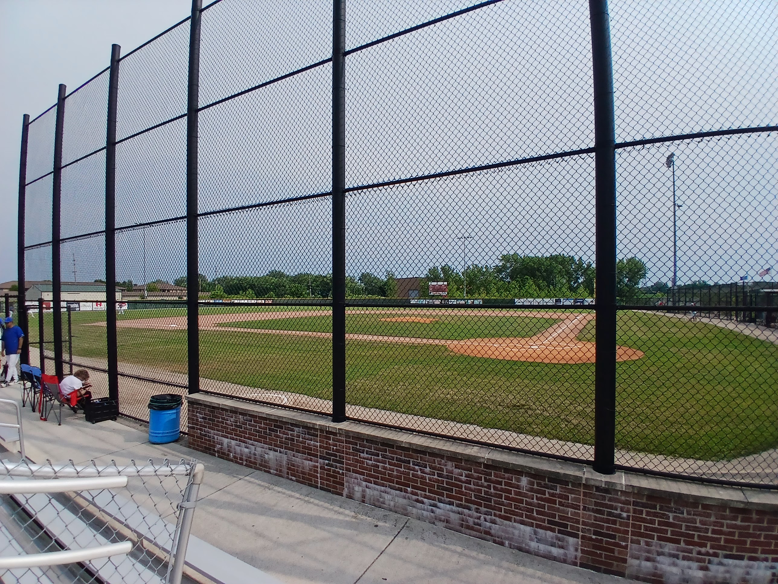 By the middle of the first inning, the crowd at Legacy Fields was nearing filling up the bleachers. Kids would come in and go, check back in with parents for food, then head back out to the perimeter areas to hang out with friends. The weather was absolutely amazing, a bit humid, with temperatures comfortably in the mid to upper 80s. A breeze would kick in every so often, but nothing to affect play on the field. Two pretty competitive teams, summer collegiate level leagues, great looking field, what an awesome baseball find there in Crown Point.