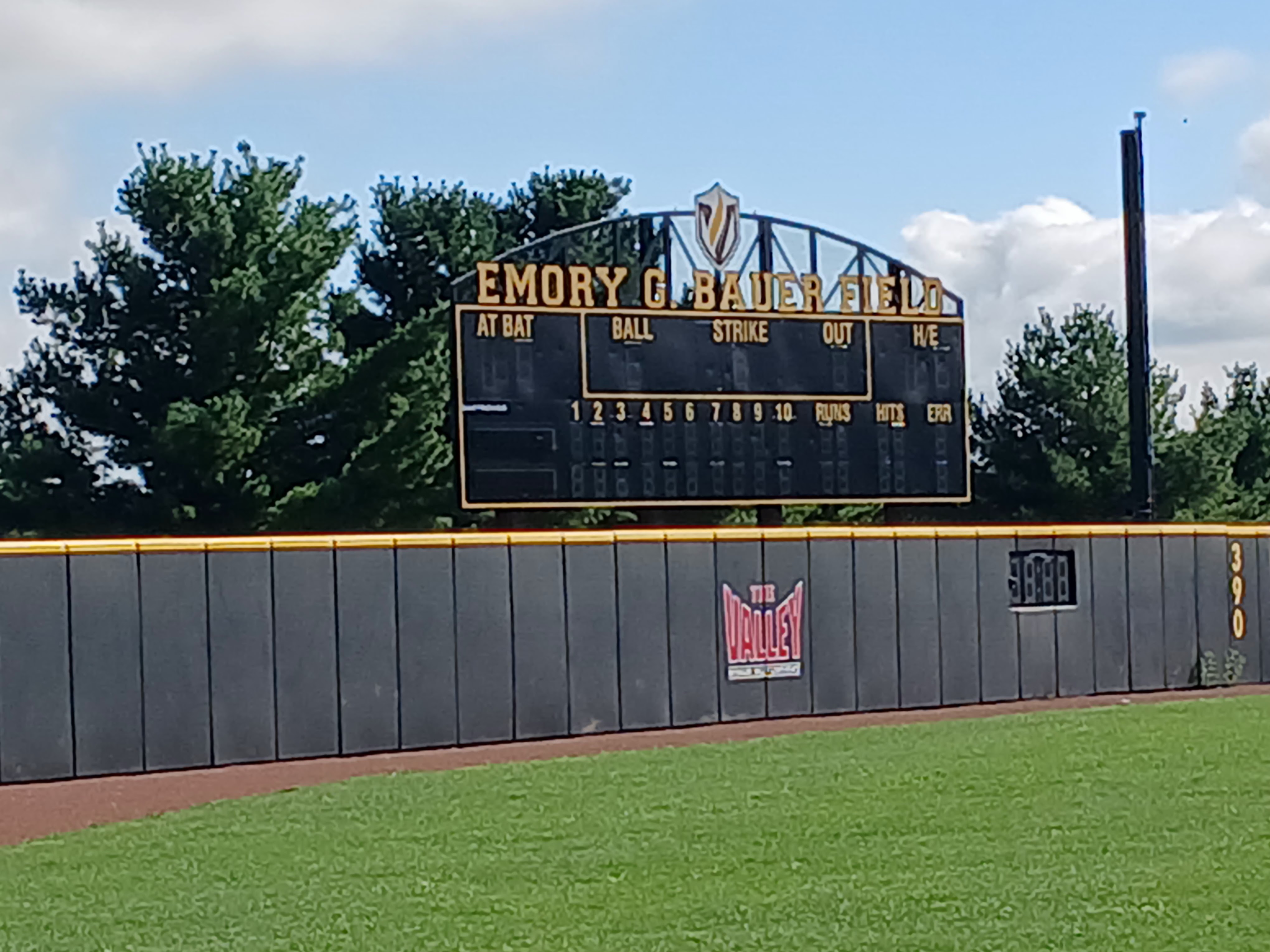 The main campus area of Valparaiso University does not have a baseball field. The baseball team’s field, Emory Bauer Field, sits about a mile or so off campus. And that is where I began my Valparaiso baseball experience on Thursday afternoon. As I pulled up to the field and parked, I noticed a few players on the field playing catch in the absolutely ideal late summer weather – clear skies, light breeze, 70ish temps. Was kind of jealous I didn’t bring my glove and join in on the long toss. Maybe next time.
