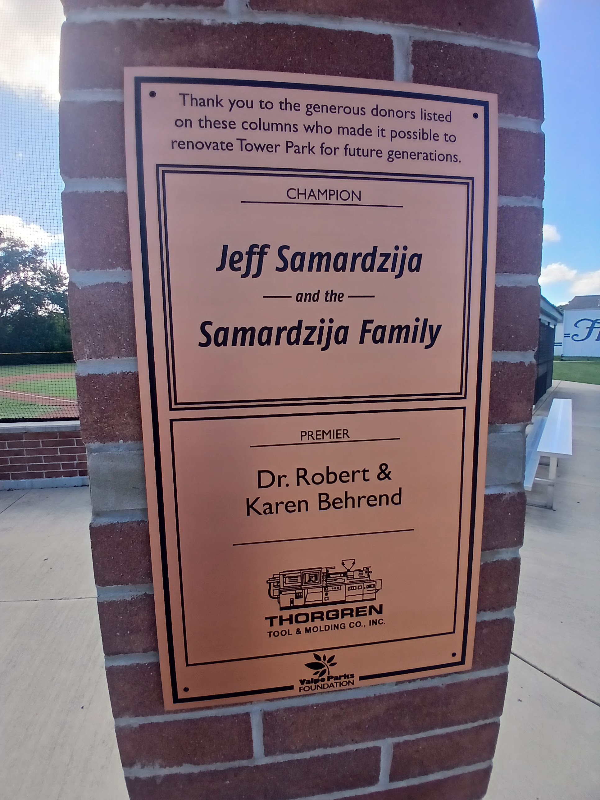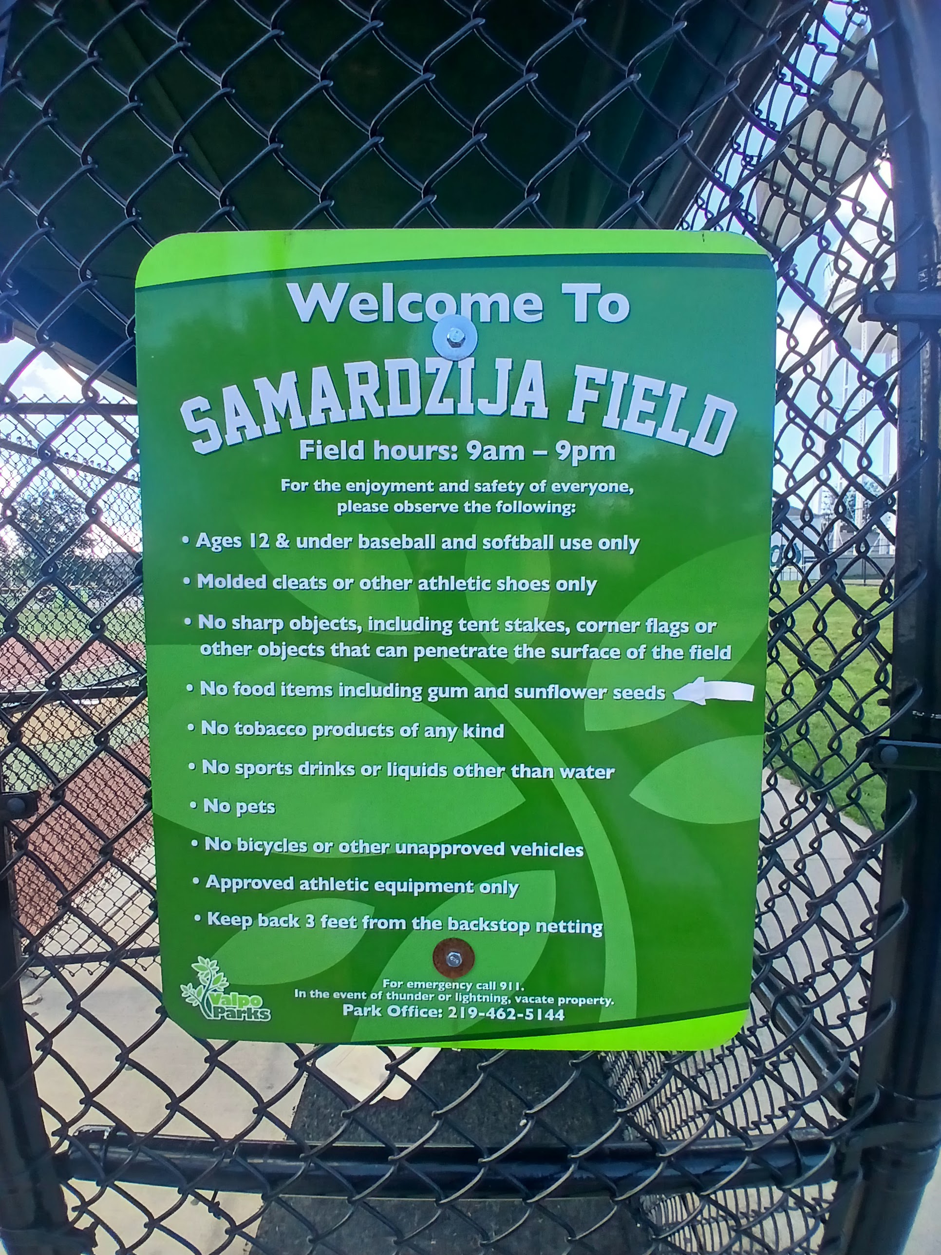 I was curious for only a moment or two about the field’s namesake. And my thoughts were confirmed when I walked up to the front gate entrance of the field. Jeff Samardzija, the former star receiver (ND Football) and Pitcher (ND Baseball), the local kid from Valparaiso High School, who made it to the Major Leagues, along with other local community leaders, was in fact connected to this field. With a last name like Samardzija, I kind of figured as much. The field is incredible, what an amazing opportunity for the youth of Valparaiso to play on such a fantastic field.