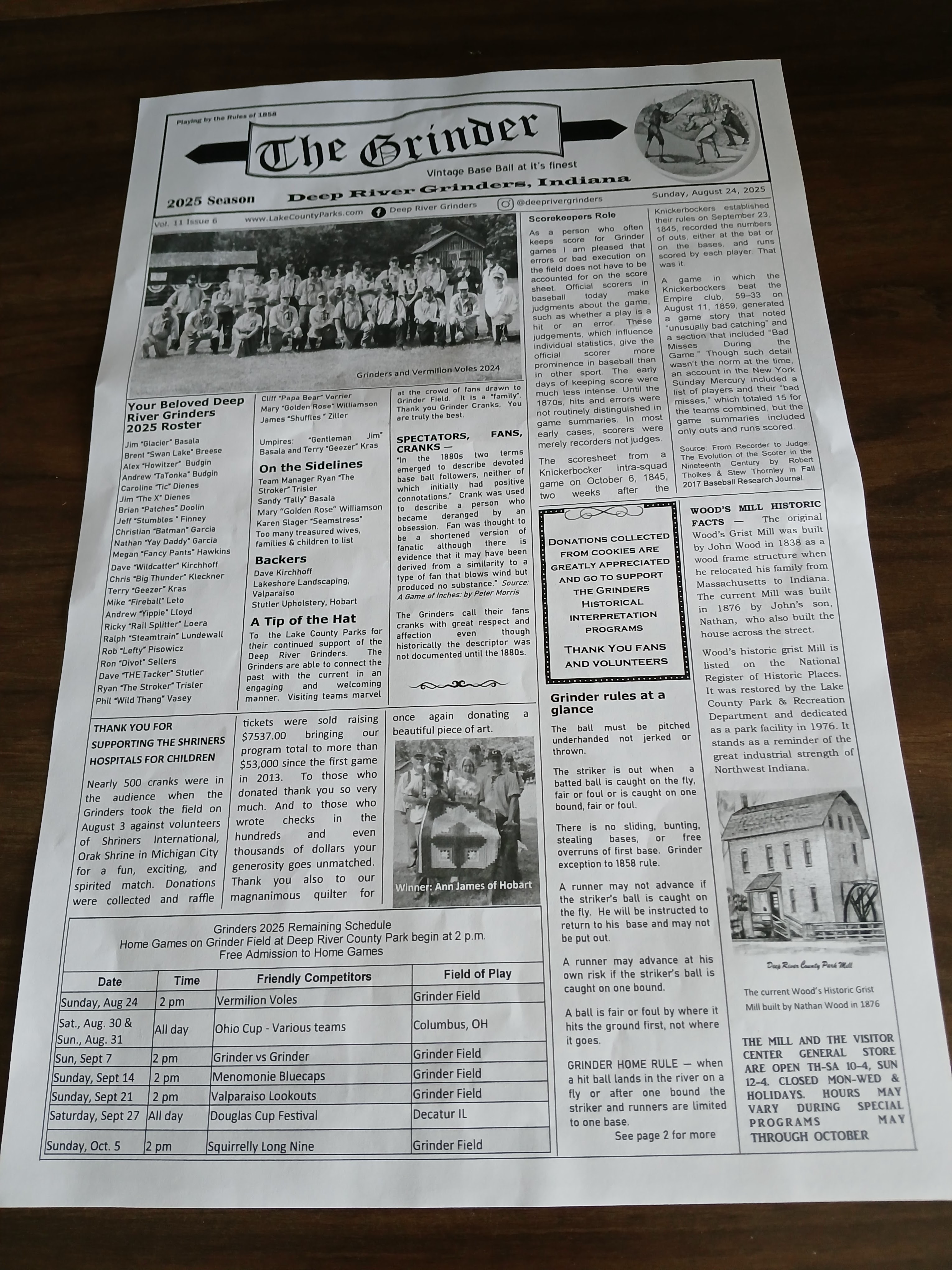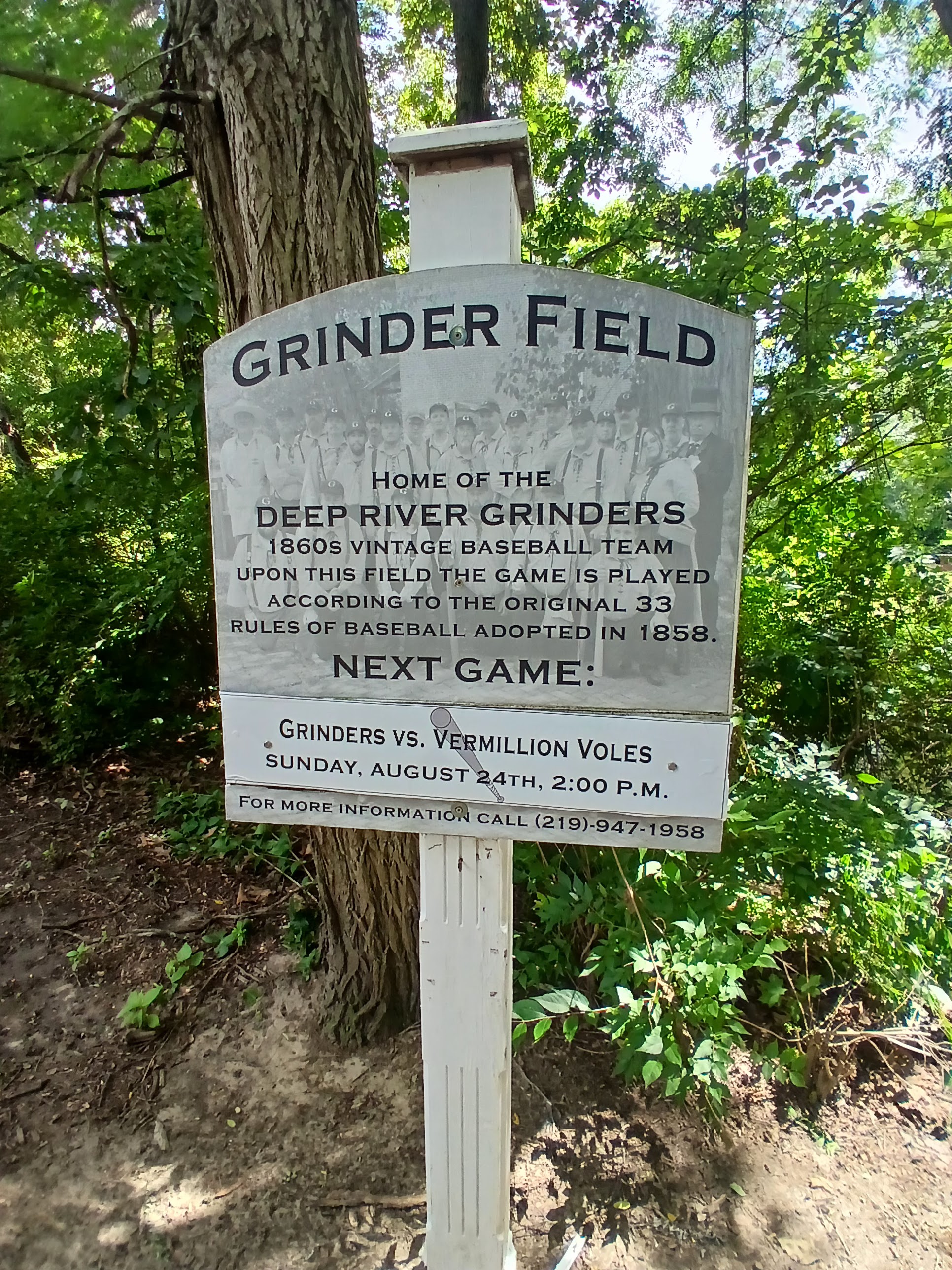 During my recent trip out to the NW Indiana/South Chicago area for business (ABF Freight), I had some personal time on Saturday morning and decided to check out a local library. Yes, libraries still exist and yes, they are awesome for research and yes, I still frequent tons of libraries. This one in particular, the Dyer-Schererville Branch of the Lake County Public Library, was a wonderful fountain of information for me. I was helped by an information librarian to the history of Lake County, Indiana section where I found all sorts of cool historical baseball information. And learned about a vintage baseball, or should I say base ball organization named the Deep River Grinders. And as luck would have it, the Deep River Grinders were set to play a game the following day, Sunday, locally in nearby Hobart, Indiana. Opportunity and timing – ah the keys to my most wonderful baseball experiences.