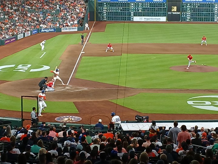 OF – Mike Trout, Los Angeles Angels. Okay Trout 2025 is not Trout 2015. So what, Trout is still an all-time great and I got to see him live in Houston vs. the Astros. Trout got hit with the “Griffey” injury bug a few years back and has never really recovered. His best days are behind him, but he is still better than 75% of the current MLB roster of players. If healthy and with a bit of luck, Trout could have another 2 or 3 years of HOF caliber play for the Angels in the years to come. Like Bryce Harper and Aaron Judge, I was just so psyched to see Mike Trout in person during a live game.