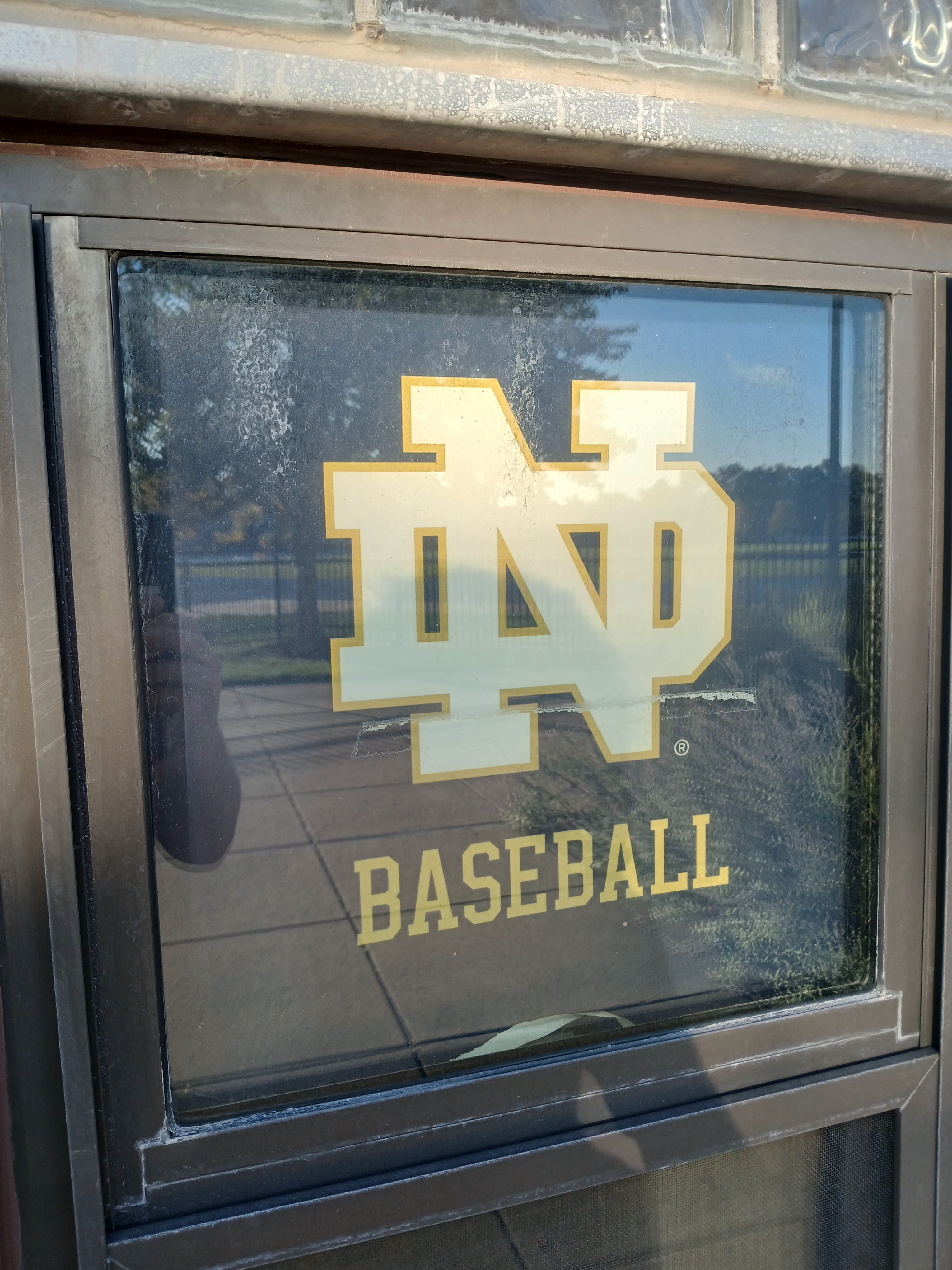 After speaking with a bookstore rep and obtaining a campus map and securing that my parking spot was not in a towable situation, I headed out on foot to visit Frank Eck Stadium, home of the Notre Dame University Fighting Irish Baseball Team. Along the way, I passed some absolutely breathtaking campus architecture – buildings, statues, massive community lawns, gardens, tributes. I think if I had more time, or I was staying closer to South Bend, I may have signed up for one of ND’s Visitor Tours. But Tuesday, I was focused on getting across the quad area, passed the famous football stadium, and to the other side of the parking lot from the Legends Bar and parking area to my intended destination – the baseball field at Frank Eck Stadium.