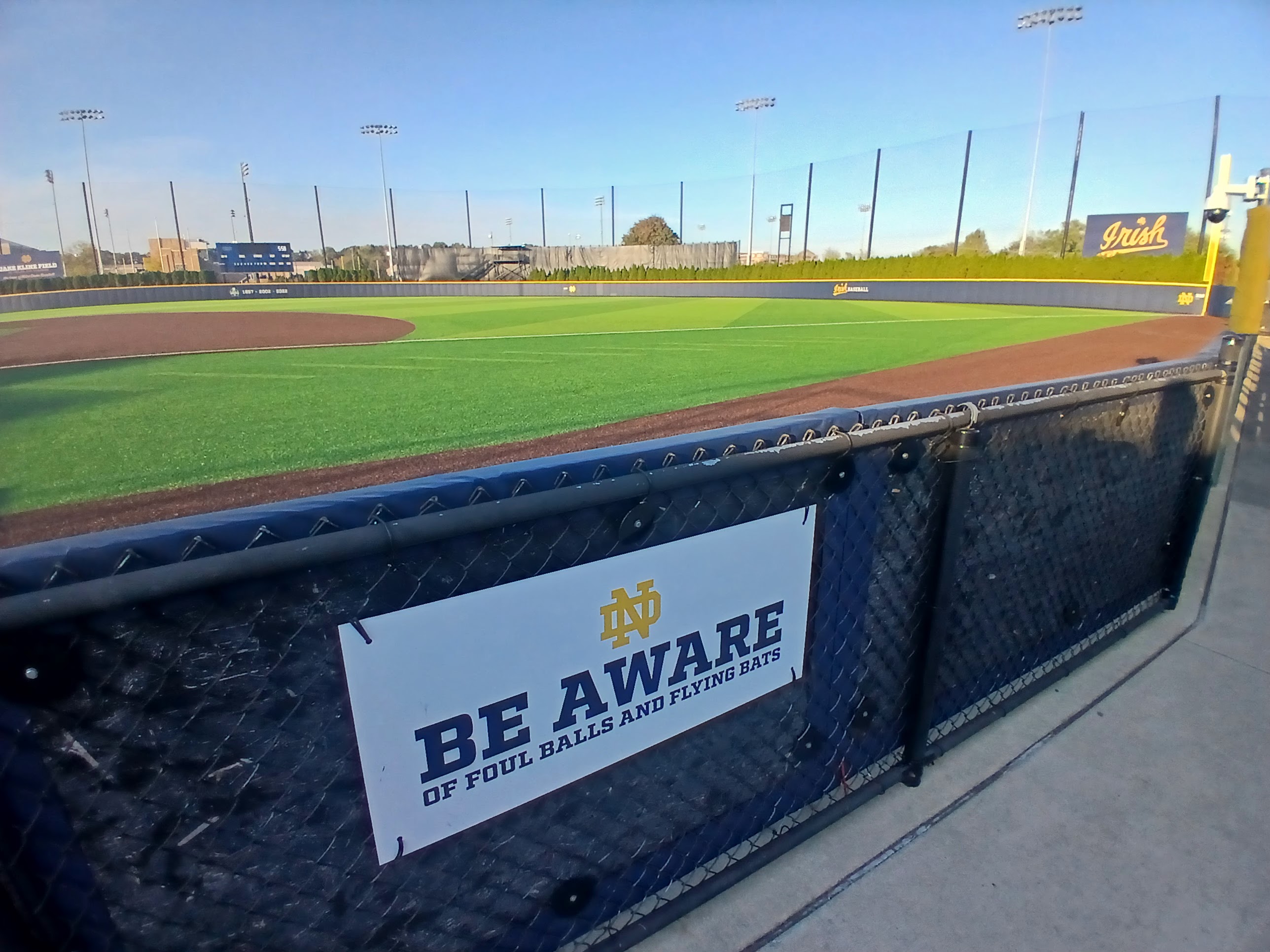 As you can see from the shadows of the above photo, I didn’t have a ton of time to explore, nor did I have a desire to be locked into the stadium should an attendant come and lock the gate I entered. So, I hustled around the stadium, snapping photos of familiar views. All in all just taking in the beauty and wonder of Jake Kline Field and the Fighting Irish Baseball experience. It really was an incredible sight to see in person.