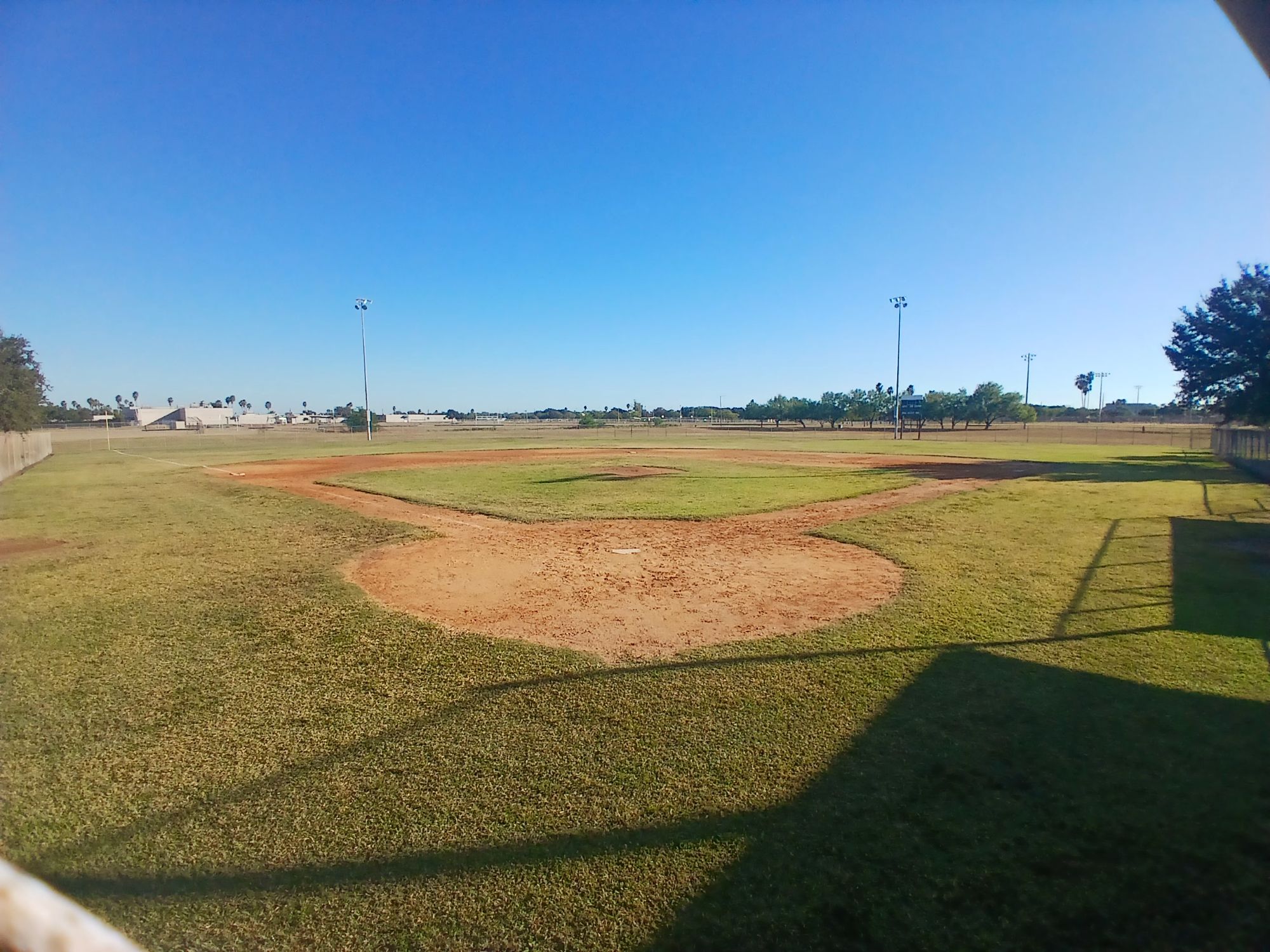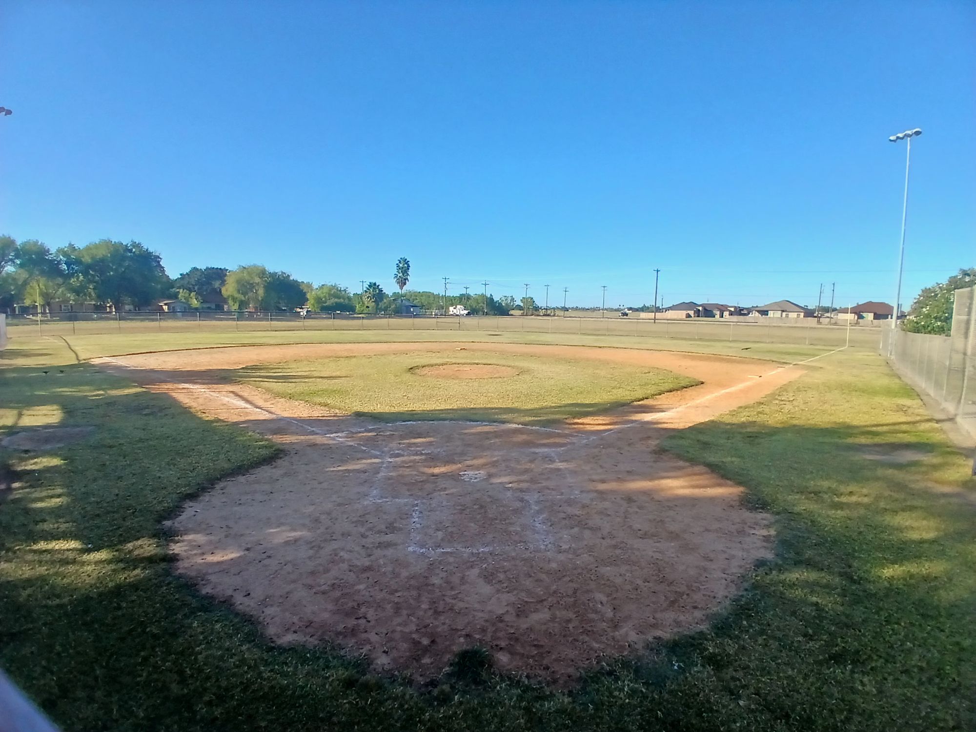I walked around just about half of the eight baseball fields at Tom Wilson. All of the fields were in ready to play condition and I stopped into the press box areas of a few of them. As the sun was coming up, I grabbed a few photos of the fields. All of the baseball fields were set up for youth baseball level play. This area of the complex had a concession stand, plenty of covered bleacher seating, and tons of shade for fans to get out of the hot South Texas sun, if they so chose to. It was a beautiful sunny morning in Harlingen, so I took my time walking around the fields and just imagined them on a busy Saturday morning during league play.
