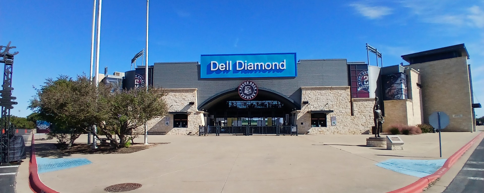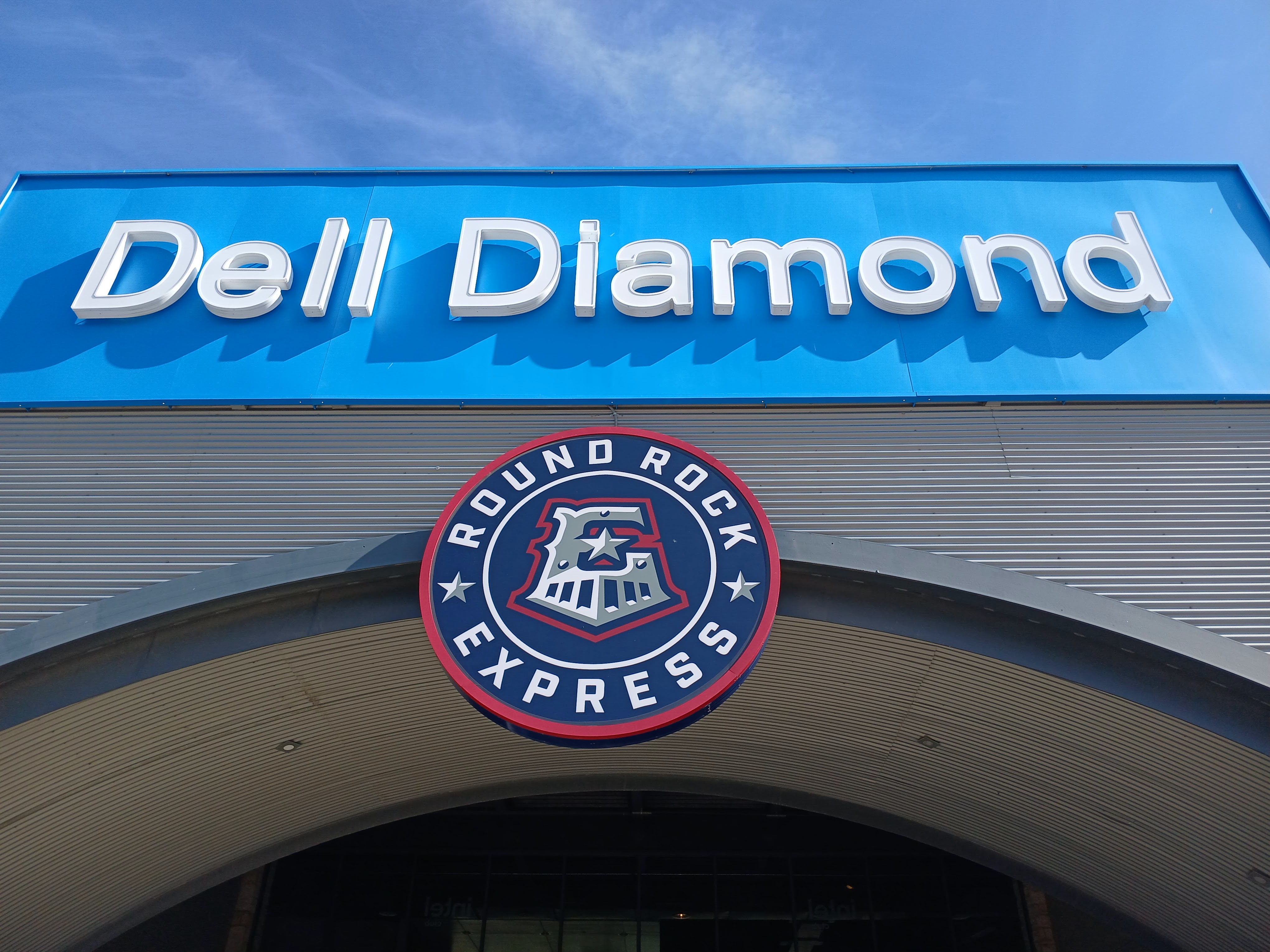 Sunday afternoon, I had the entire day wide open to explore and visit some baseball experiences in nearby Austin, Texas. I took the roughly 80 mile trek northeast from San Antonio, where I was staying in advance of a business campaign for work (ArcBest), to Austin on a beautiful, sunny, Sunday morning. The construction along I-35 in and around the City of Austin was impressive – huge overpasses and mega-highways are in the process of being constructed. It took about an hour and a half to arrive at my first stop, which was just north of the Downtown Austin area – Dell Diamond, home of the Round Rock Express.