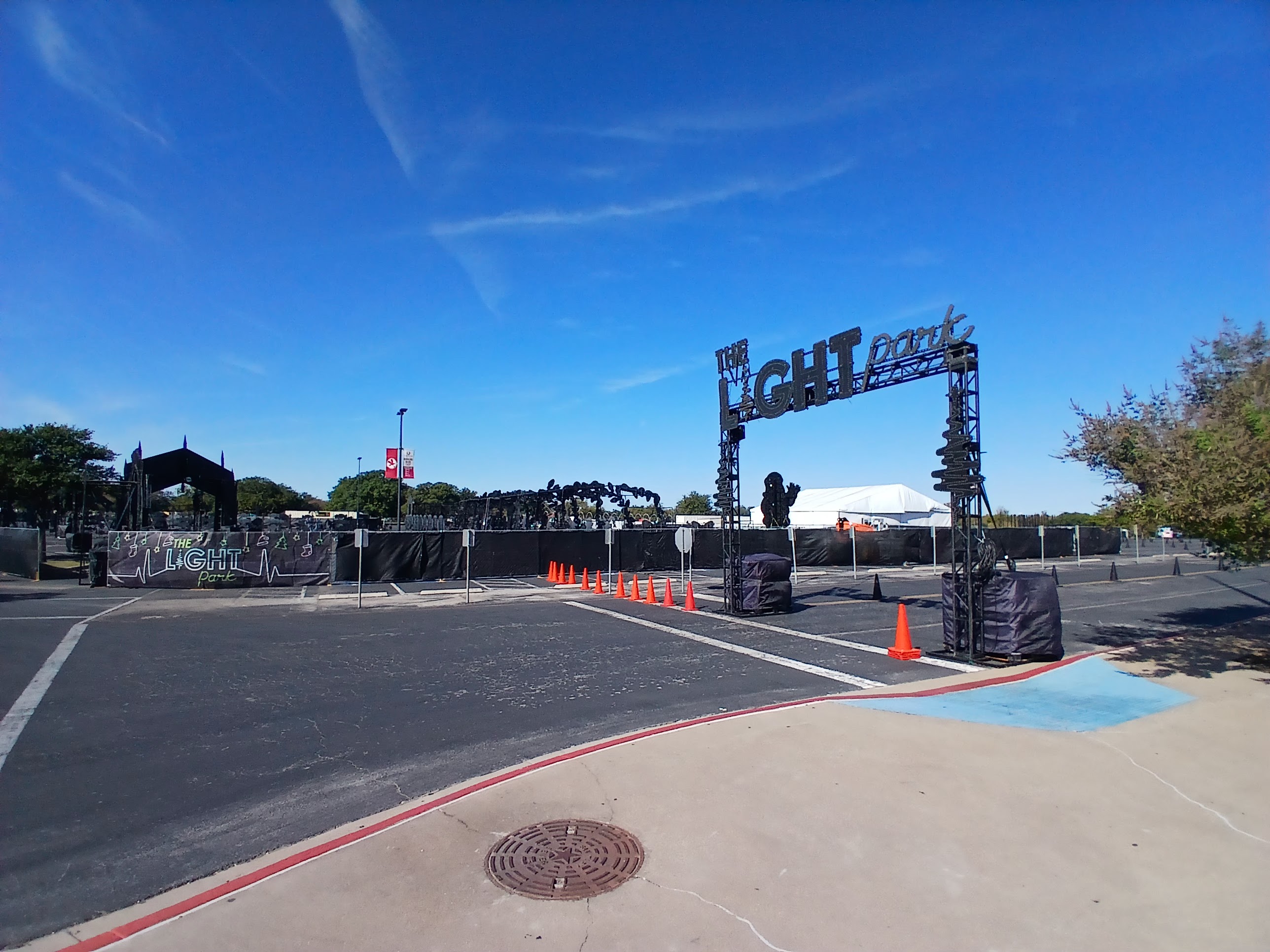 Dell Diamond is the home field for the Round Rock Express, the AAA Affiliate of the Texas Rangers. When I arrived Sunday morning, a local car company was hosting a driving event for local Texas teens. And in an adjacent parking lot, there was a holiday lights thing going on. I mean after all, it is the off-season. And the gates and entrances to Dell Diamond, understandably were locked. No worries, I took a stroll around the front and left field side of the perimeter, snapped a few photos, and then was on my way to my next stop – the University of Texas – Austin. Or as most refer to it, UT.