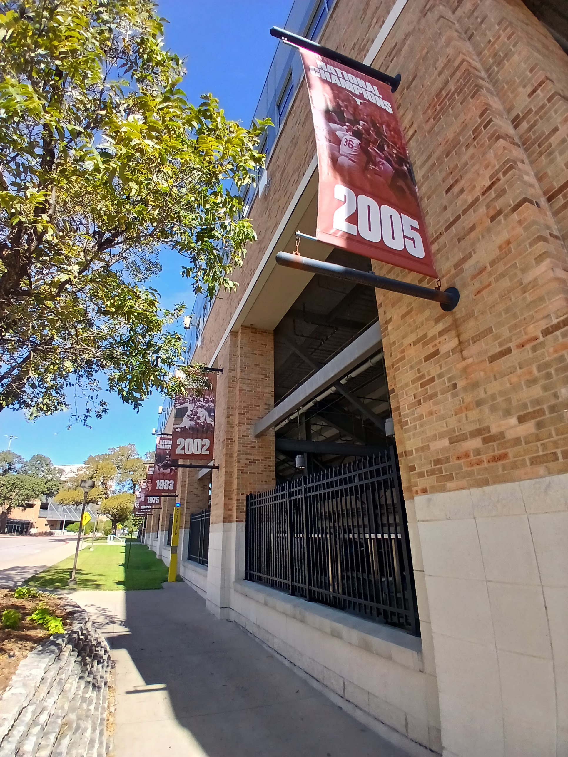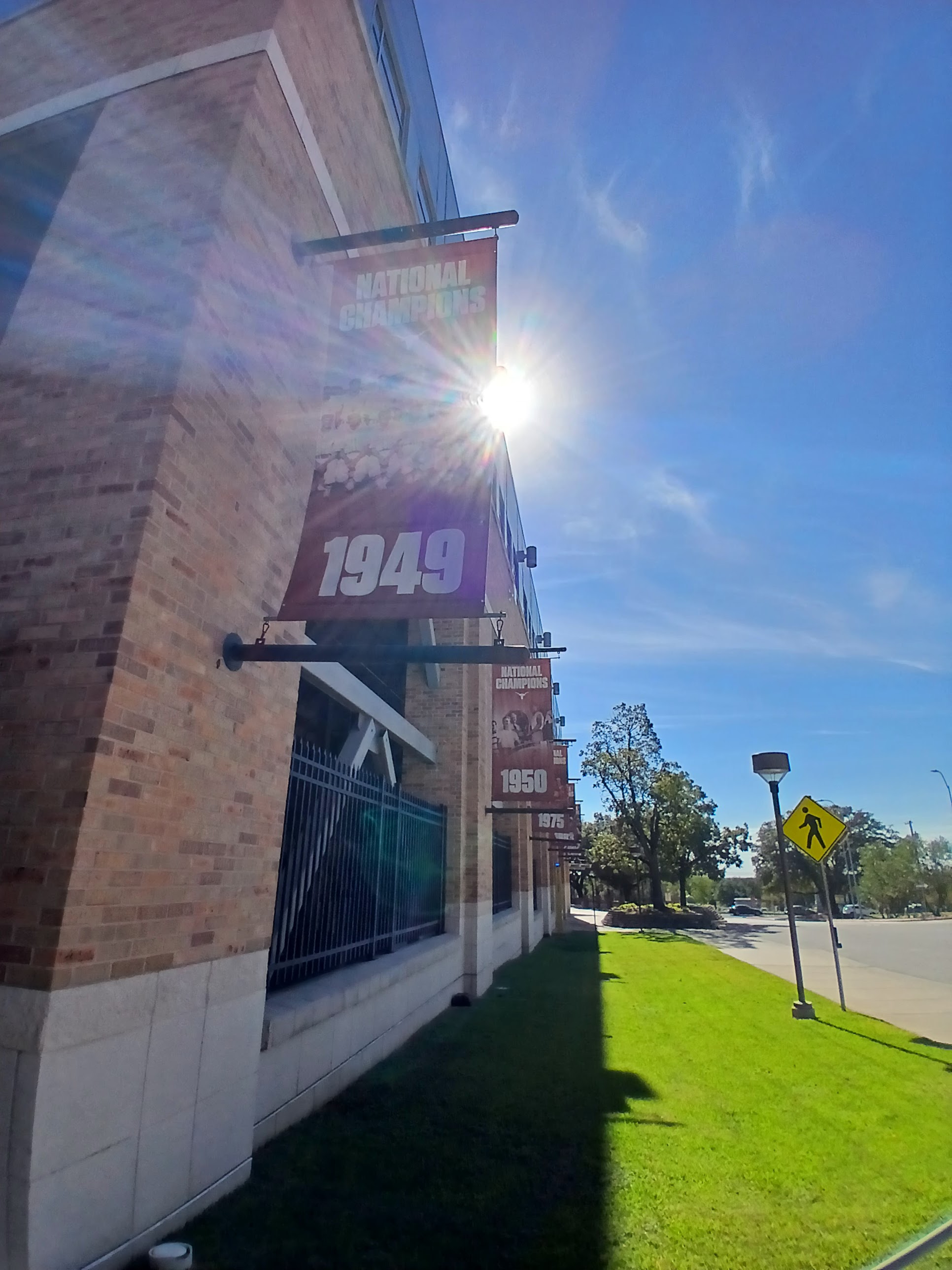 I started at the front gate area and wound my way around the perimeter of the Disch-Falk Field. The stadium was closed Sunday morning, again understandable. No worries, there was a convenient sidewalk with some great views of the UT Baseball accomplishments, as well as a pretty cool view of the field from roughly the centerfield angle. The sun was now helping me out photography wise and I got some cool photos of the field and the UT championship banners.