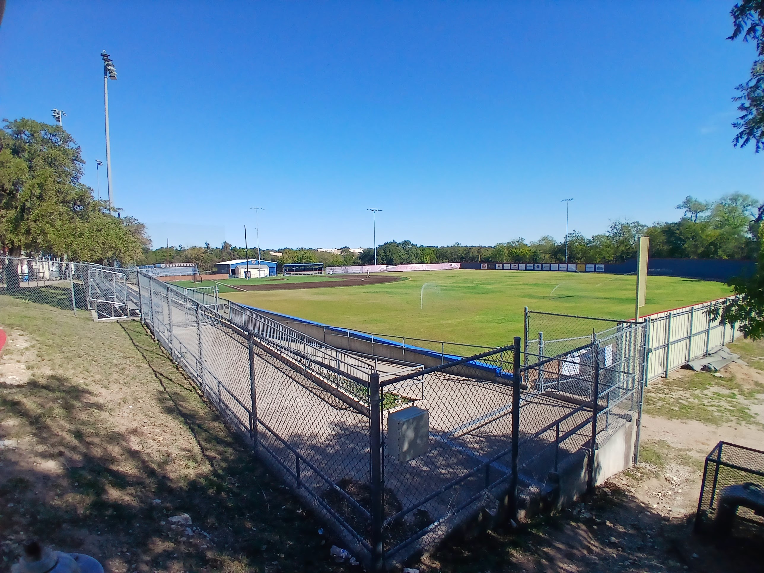 Westlake High School, probably better known as a Texas Football factory pumping out major talent over the years. Still, the field was beautiful and, theme of the day, closed for on field viewing.