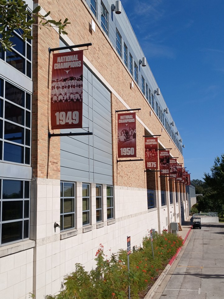 T – University of Texas – Austin’s UFCU Disch-Falk Field, Austin, TX. Closed but still got to walk the perimeter of the stadium, check out their national title banners, and see parts of the stadium from the sidewalks of UT.