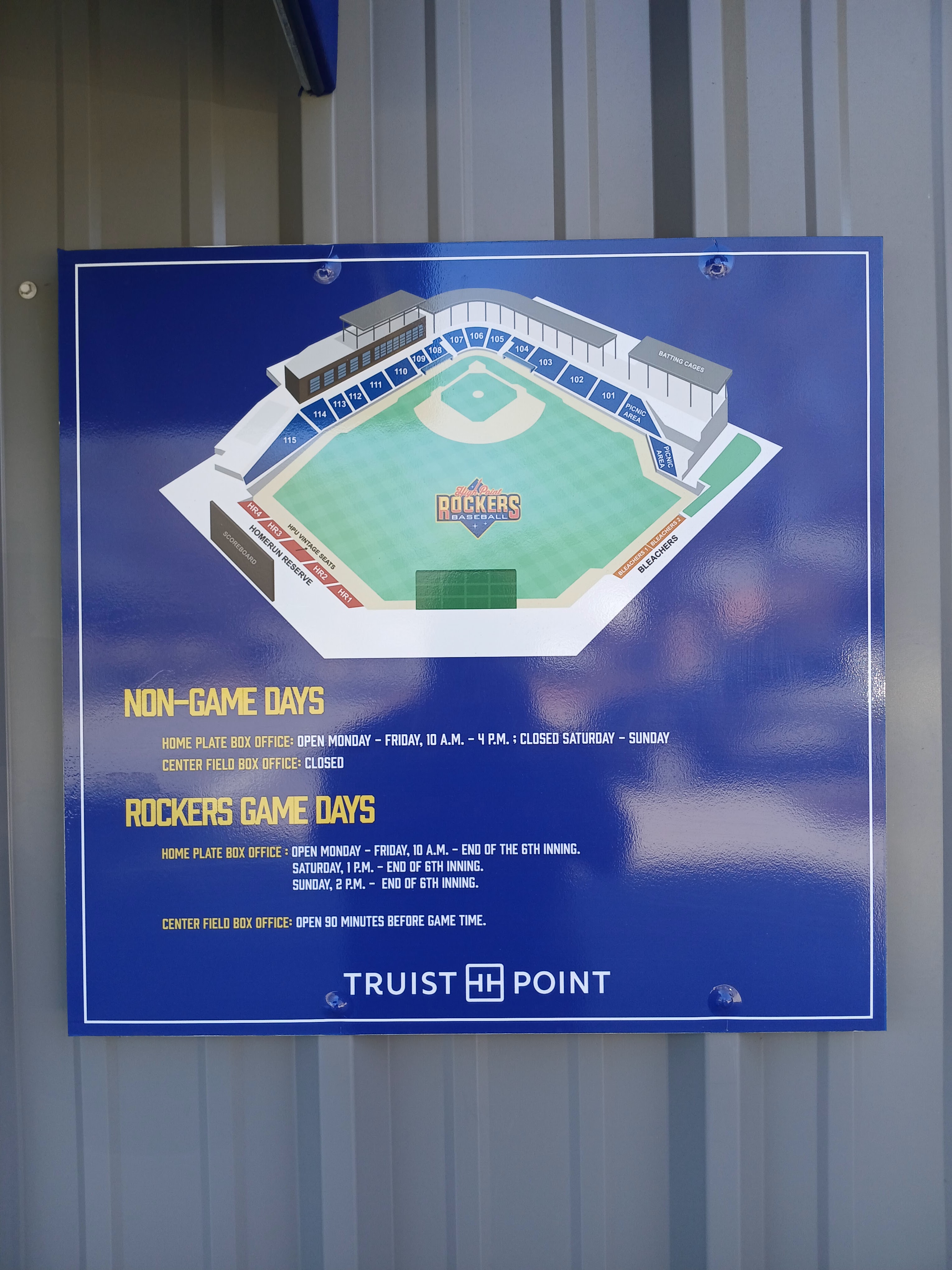 It was a chilly, winter afternoon of baseball experiences in and around High Point and Thomasville, North Carolina on Monday. The fields and bleachers and ticket gates are all in winter mode, so I made the most of my trips to these baseball treasures and just enjoyed my time outside. The weather cooperated for the most part, staying in the high 40s with mostly sunny skies and very little wind chill. I was able to view and explore 4 fields and loved every step of every field I visited. And, based on Google Maps, I have a bunch more to explore here in the Winston Salem area, time permitting of course. And look forward to the Spring and Summer months when Truist Point Stadium, Finch Field, and Ed Price Field will all be baseball ready and hosting live games with tons of excited fans.