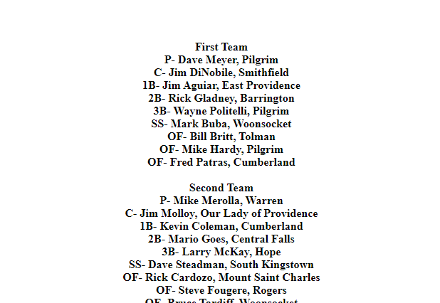 Before I go into the stats and All-Division teams and win/loss records of these incredible 20 Rhode Island High School Baseball teams, I have to say this project has far exceeded my expectations. I am getting a daily education on the teams, the players, who coached, who starred, who came out of nowhere, and who deserves a freaking book deal because he is so awesome!!! I am getting expert analysis from former players and even more expert analysis from some of their coaches. I played RIHS baseball from 1986-87 to 1989-90 so I have a pretty good memory of about … Continue reading Wednesday Morning Stats Festival Featuring Best Rhode Island High School Baseball Teams Since 1972